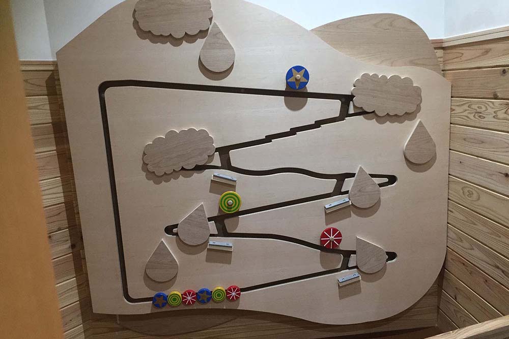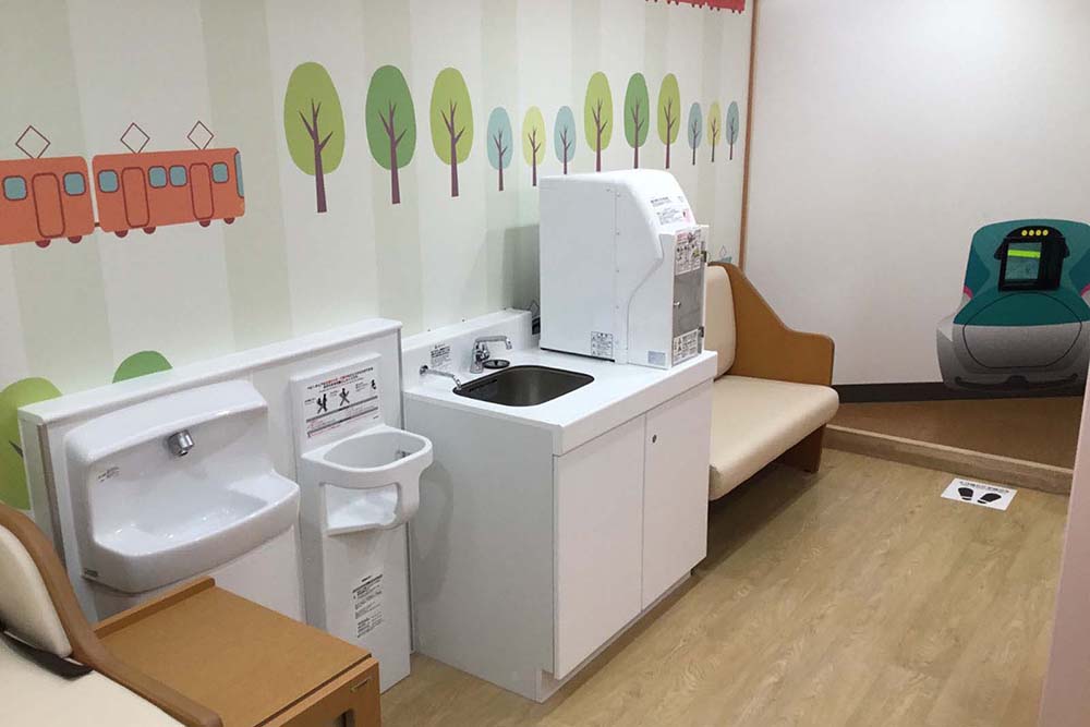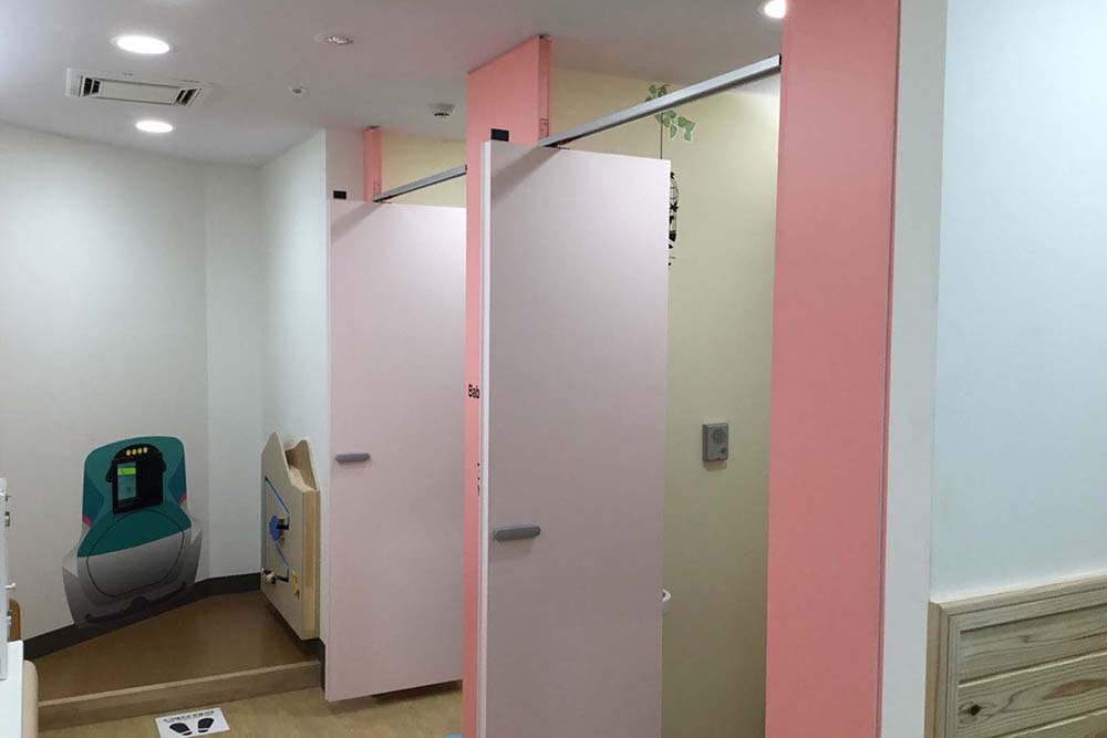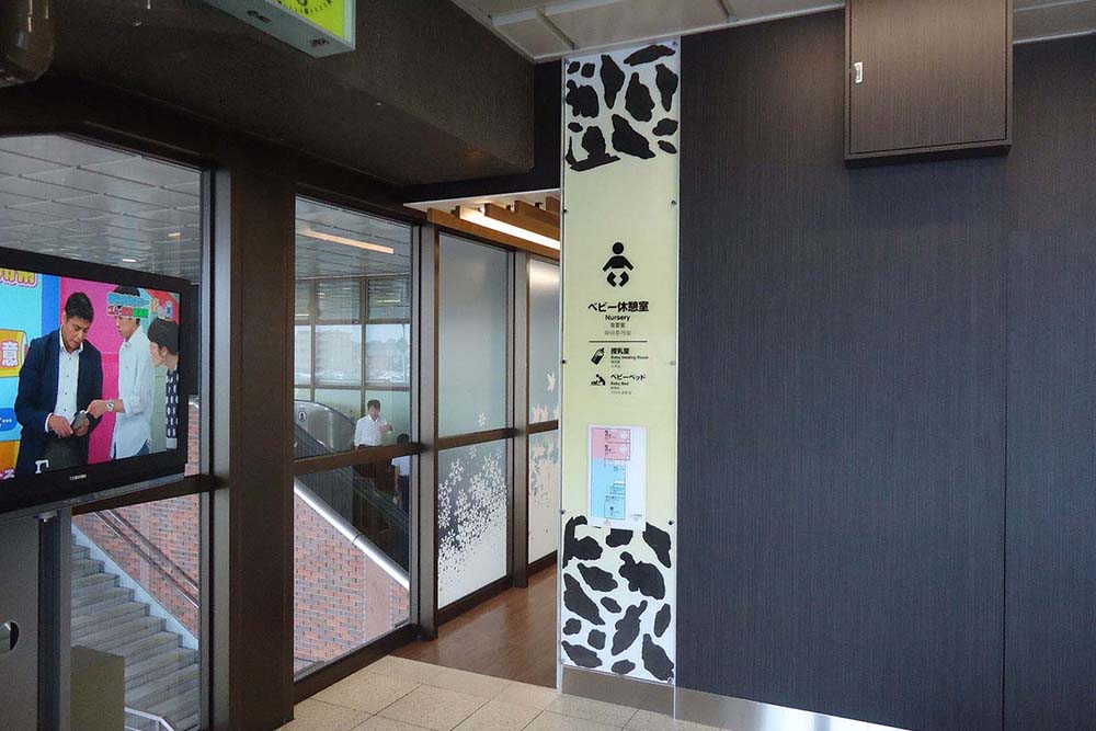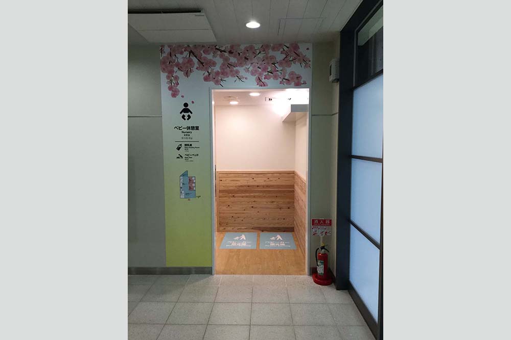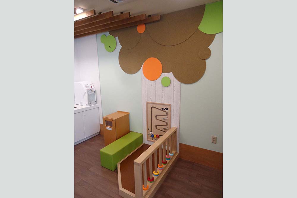 サービス向上の一環として大宮支社管内の新幹線駅全駅にベビー休憩室整備を行った。お客さまが利用しやすいよう、動線を考慮した配置とした。授乳室、おむつ替えスペース、食事スペースの他に、社内としては今回初となるキッズスペースを設けている。随所に仕上げ材に天然木や木目調を使用し、温かみのある空間とした。