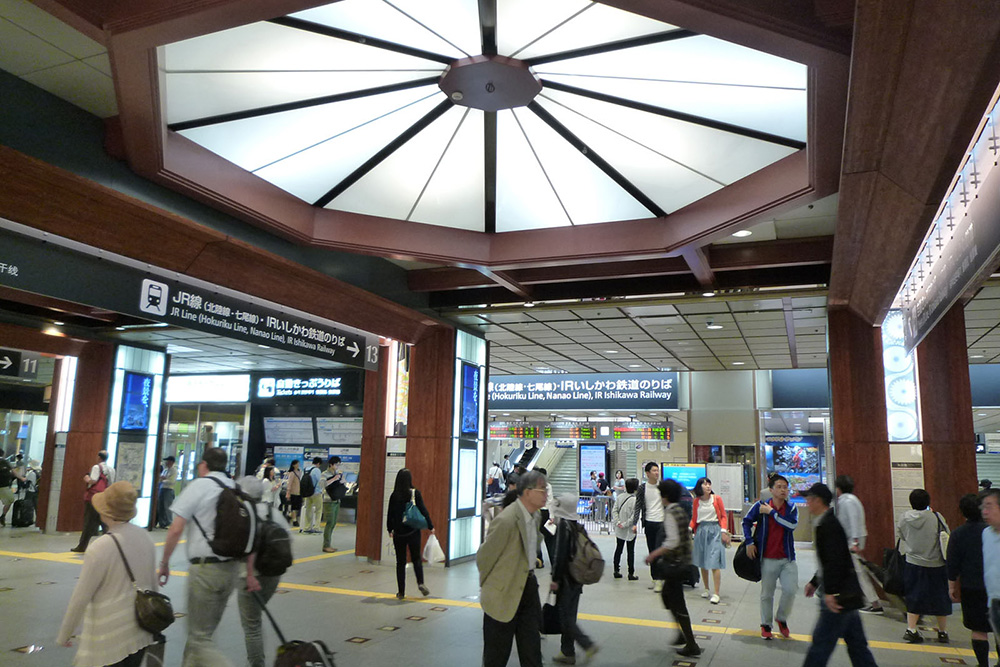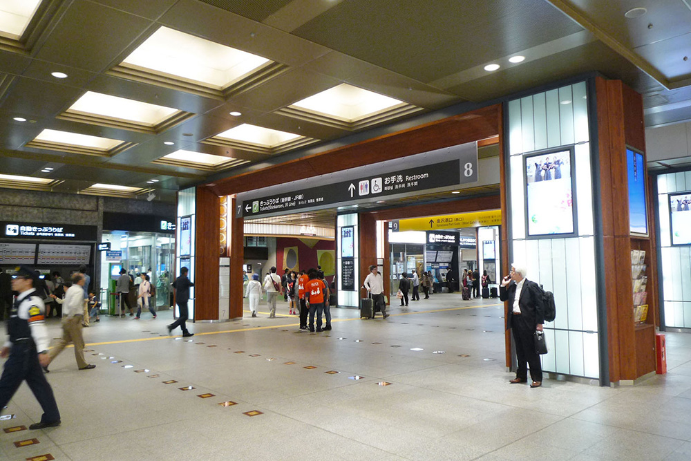 平成27年3月14日の北陸新幹線の金沢開業により、金沢駅は新幹線と在来線が併設された高架構造の駅舎となり、東西の駅前広場と合わせて金沢駅の整備が完了した。今回、北陸新幹線金沢開業に併せて、開業効果を最大限に引き出すことを目的に、柵外コンコースの全面リニューアルと在来線金沢駅のトイレ改良を実施した。