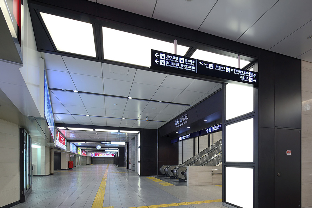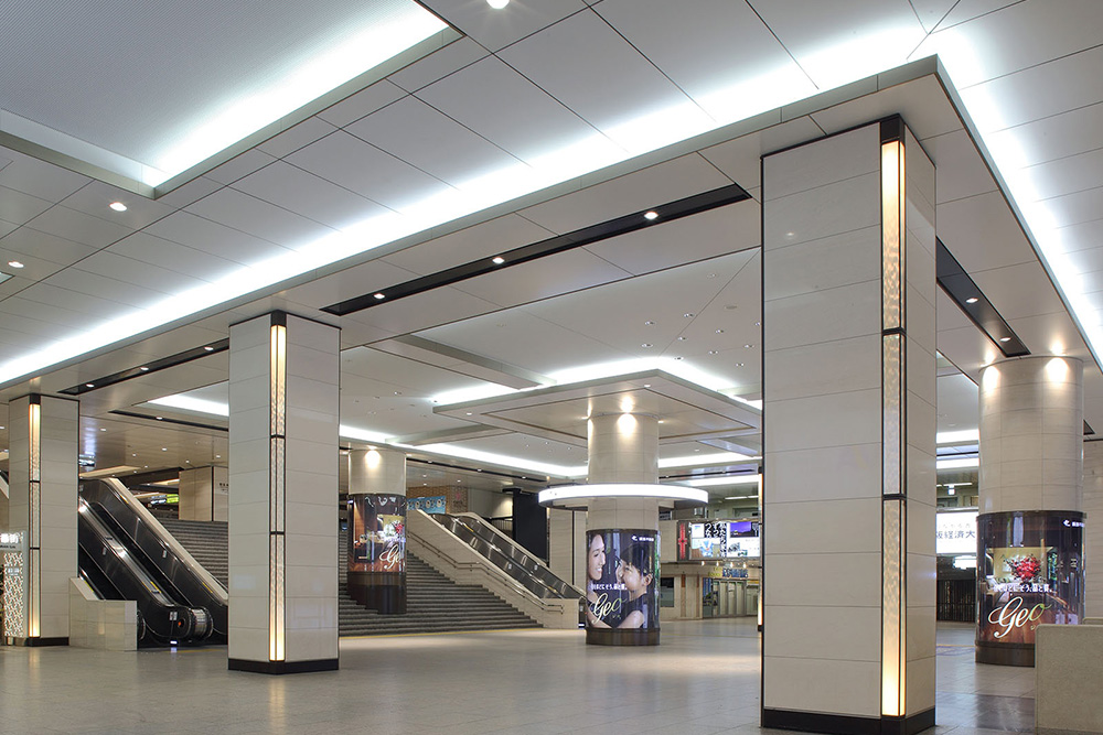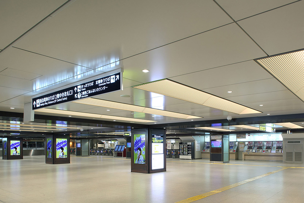 阪急電鉄のターミナルである梅田駅。周辺開発が活発化するなか、“劇場空間 阪急スタイル”をコンセプトに、内装イメージを一新するリニューアルを実施した。照明による演出効果などを活かして「華やかさ」や「エレガントさ」をより追求し、大阪梅田地区の「顔」にふさわしい、洗練された統一感溢れる駅空間へと生まれ変わった。