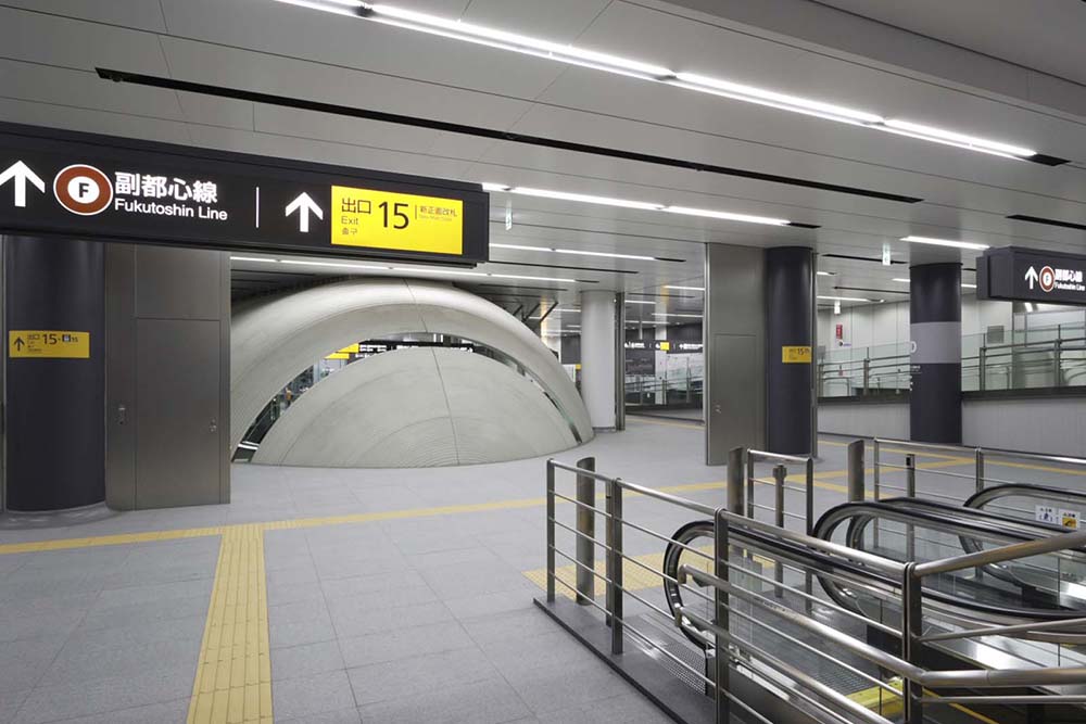 渋谷駅は、旅客の心に残る駅として『地宙船』『3層吹抜け楕円開口』を設置、合わせて旅客へ安心感及び開放感を与えている。また、『自然換気システム』『放射冷房システム』を導入し、環境負荷を低減している。過去に類を見ないさまざまな取組みを実現し、新しい時代の地下駅モデルを目指している。