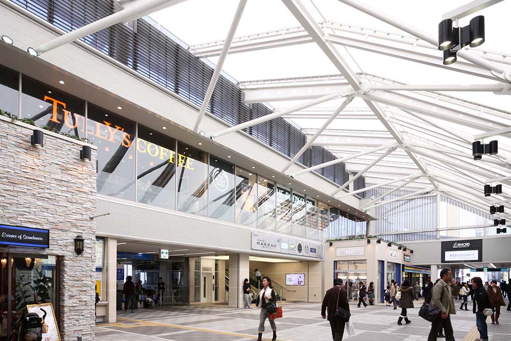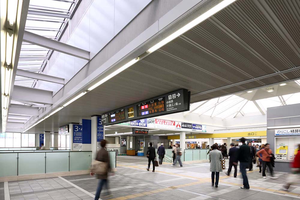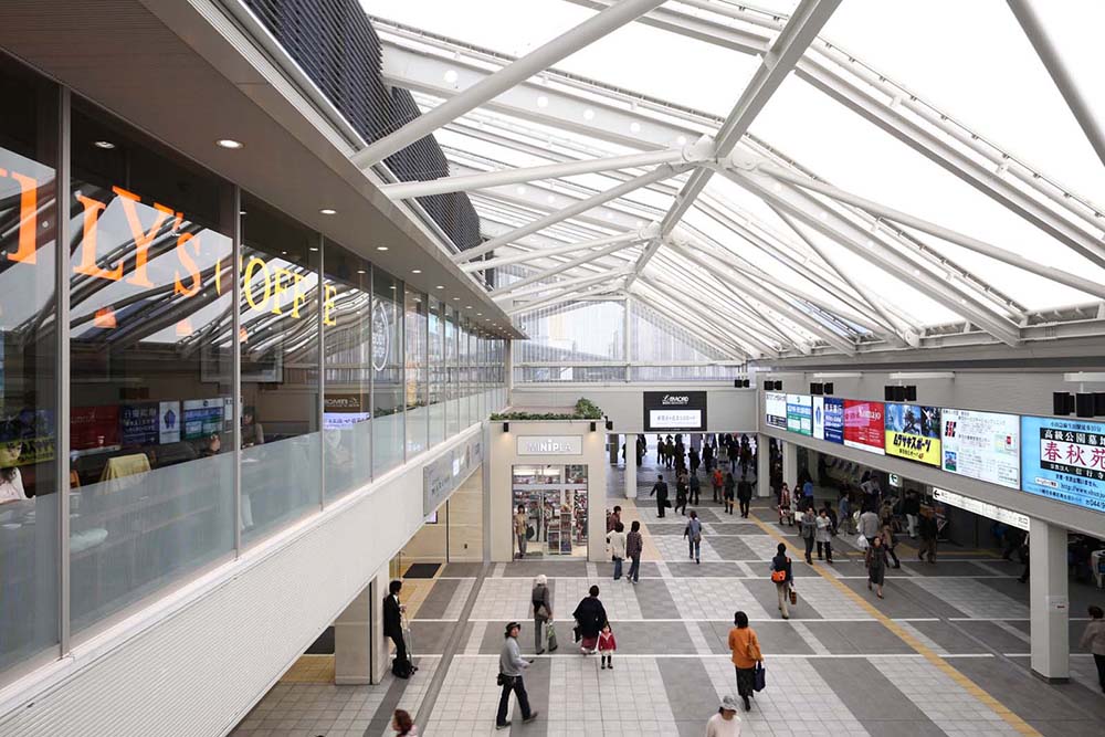 増大する旅客対応や、駅舎のバリアフリー化に伴い、エレベーター、エスカレーター、コンコース拡幅等の整備工事が計画された。増築部分からオーバーラップさせる様に15mのキャンティレバーによる大テント屋根で既存コンコースをインボルブし、既存の屋根部分を解体撤去する事によって、一気に大空間のコンコースが実現した。