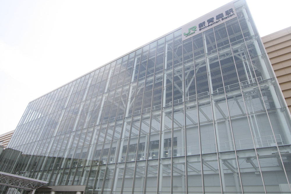 新青森駅は青森県の玄関として産業、交通及び観光にとってのエントランス機能を期待されている駅である。青森は日本最大級の縄文集落跡である三内丸山遺跡を有する事から外観に縄文をモチーフにした外壁とし、内装材には県木であるヒバ材や伝統工芸である津軽塗りを施し、降り立った旅客に青森を感じてもらえる駅としている。構造は2層高架下駅であり、在来線新青森駅、南北自由通路と観光情報センターを併設している。