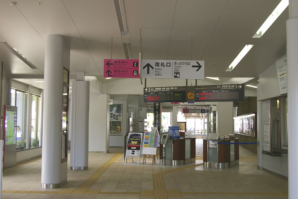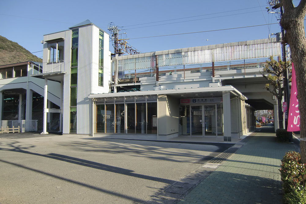 河津駅は、早咲きの河津桜と伊豆の踊り子で賑わう駅です。今回の改修には、観光施設整備事業費補助金(静岡県・河津町)および鉄道軌道輸送高度化設備事業費補助金また河津町のご協力を得て、高架ホームへのバリアフリー対応エレベーターを設置し、合わせて既存駅舎の増築・改修と、北出入口を新設しました。極力既存建屋を生かし、明るく風通しの良い、だれでも安心してご利用いただける安全で快適な駅へのリニューアルを改修工事の目標としました。