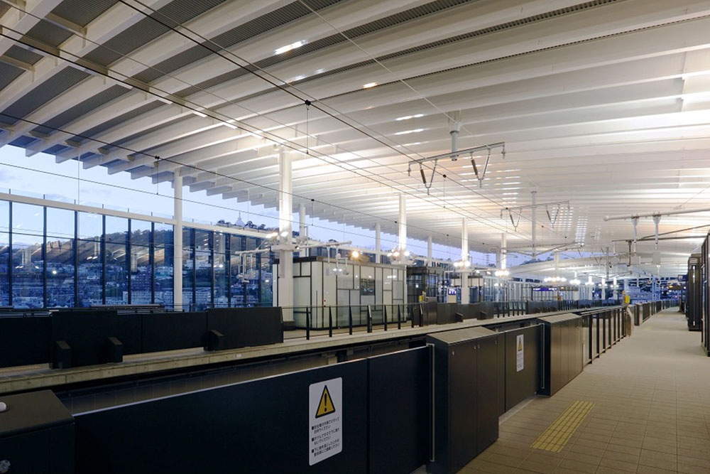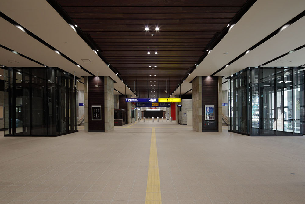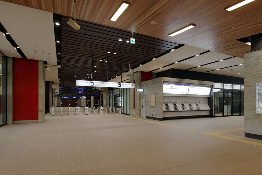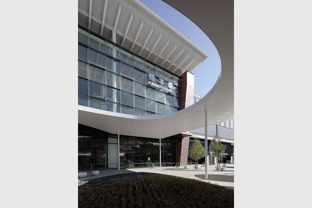 熊本駅は、熊本県の新しい玄関であり、最初に熊本に出逢い、また迎える場所であります。「悠久なる自然と風格が映える駅」というコンセプトのもと、駅正面には、城門をイメージした大きな門柱と、下見板を模したガラス壁を配し、駅広場に向かって張り出した大屋根を設けて、熊本の歴史・風格・雄大な自然を象徴するデザインとしています。