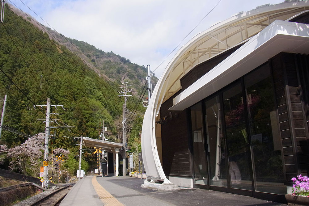 白丸駅は青梅線の終点から1つ手前にある無人駅です。待合室の中に有効に自然光を取り入れるため屋根及び外装仕上げとして膜材を用いました。膜で建物を上部から側面にかけて覆いこみ、外観を駅名どおりの白くて丸いシンボリックな形状にしました。また、夜間には膜を内側からライトアップすることで待合室全体がホーム上を照らす巨大な照明になるようにしました。鉄骨造ですが、周囲の自然との調和を考えて外壁には杉板材を用いています。杉板は黒に近いこげ茶で塗装し、膜の白さが際立つようにしました。