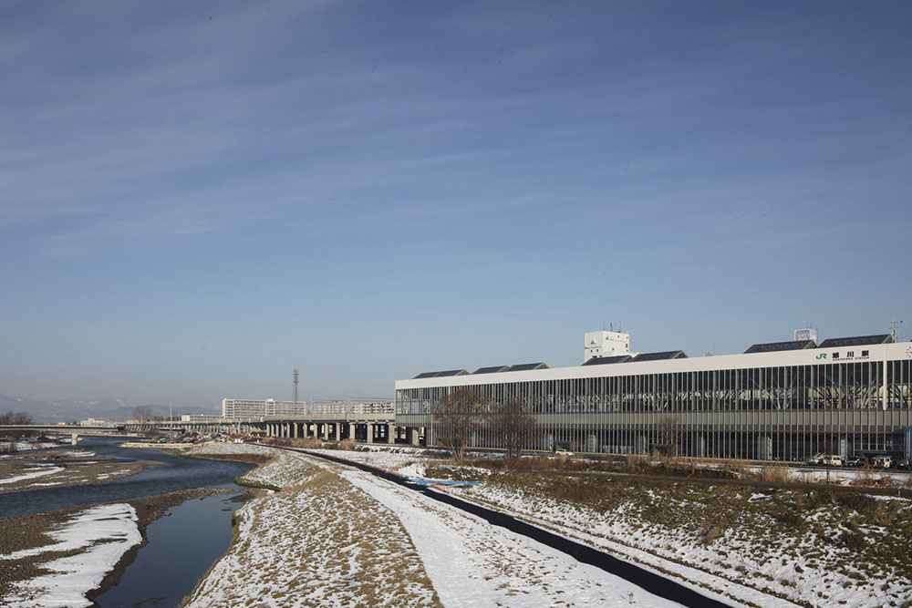 旭川市は北海道第二の都市であり、拠点都市としてその役割が期待されている。現在進められている「北彩都あさひかわ」の街づくりは、「川のまち旭川」に相応し、豊かな自然との調和を目指している。旭川駅舎のガラスによるファサ-ドは、インターフェイスとして「自然」と「まち」を繋ぎ、木材で覆われた内部空間は「温もり」と「やさしさ」が感じられる。