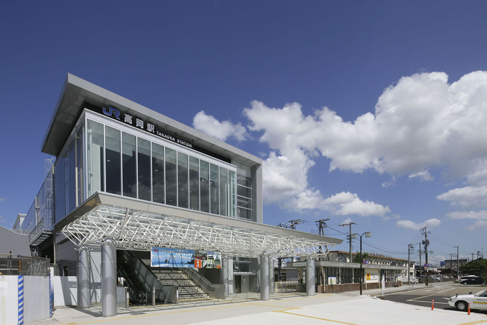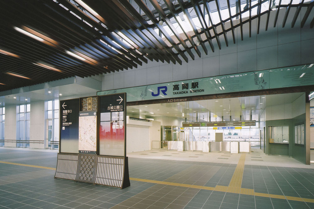 「良質な高岡の文化・技術・歴史を継承し未来への発展を予感させる駅」をコンセプトとし、平成23年8月に橋上駅舎・南北自由通路が完成した。自由通路には立山連峰をイメージした天井ルーバーを設置、各ホームへ降りる通路には金沢・富山・氷見・城端と行先をイメージさせる色と植物をモチーフとしたゲートサインを設け文化と技術を表現した。