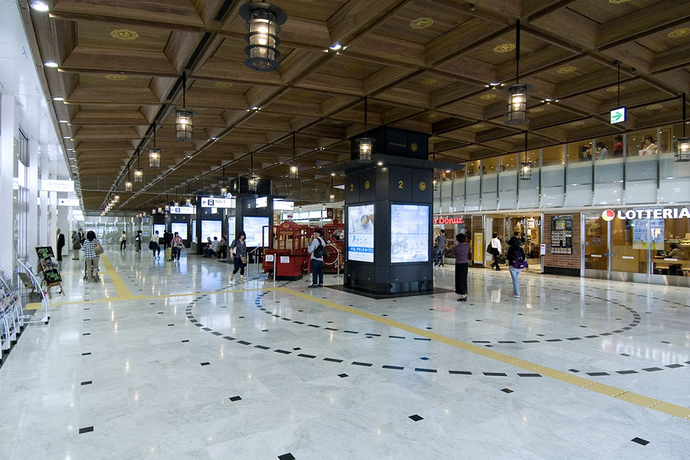 大分県・大分市と共に大分都心の新しい玄関口として「親しみやすさ」が感じられる駅を目指しました。駅南口ファサードは煉瓦や石といった天然素材を採用しています。内部空間等についても、楽しさや賑やかさが感じられよう「にわとり」のモチーフや電気自動車式ミニトレインを運行させ、幅広い方々が憩える魅力的な空間づくりを行いました。