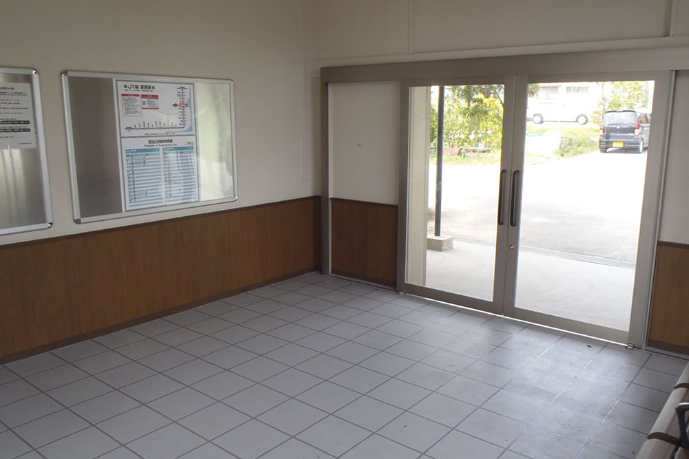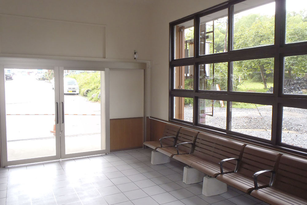 既存駅舎が残っていた陸前階上駅は専用道の上り用と下り用上家を配置し、既存の駅と上家をつなぐ通路上家を新築し、既存駅舎の待合室、外装を改修した。仕様としては、床が塗り床、屋根材がSOP塗装、内壁がEP塗装、外壁がアルミ縦ルーバー設置とした。