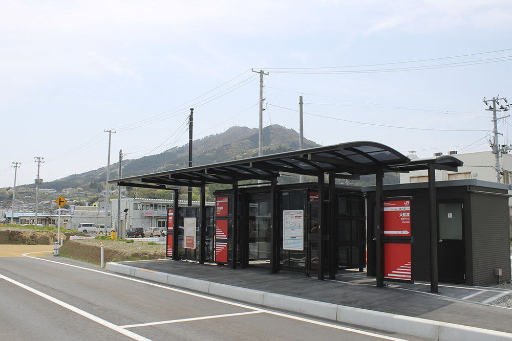 BRTの工事は、駅舎として待合室と上家整備、バスポール設置など、整備したものであり、津波により被災流失した駅位置にBRTの駅(待合室、上家、便所)として建設したものである。小規模駅舎(待合室:11㎡)の仕様は床がアスファルト舗装、屋根材、外壁材がポリカーボネイト板で整備し室内を明るい環境とした。