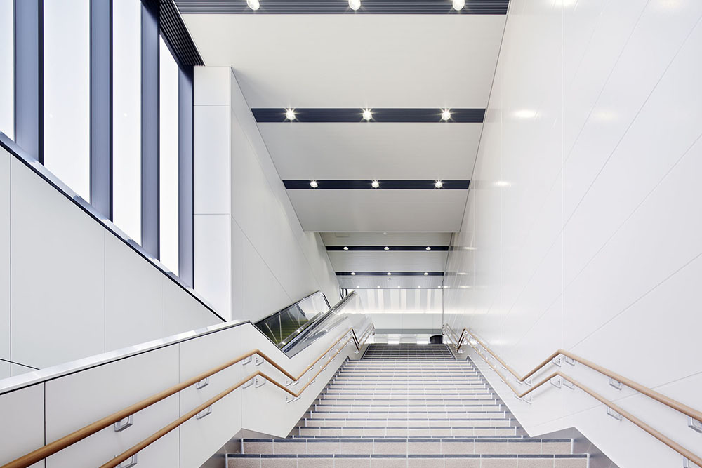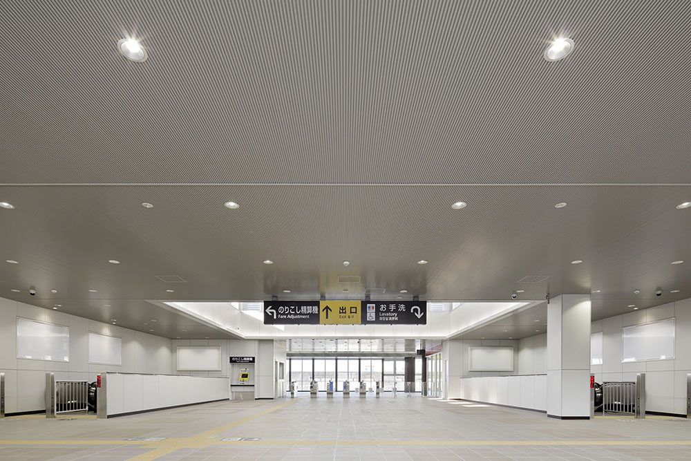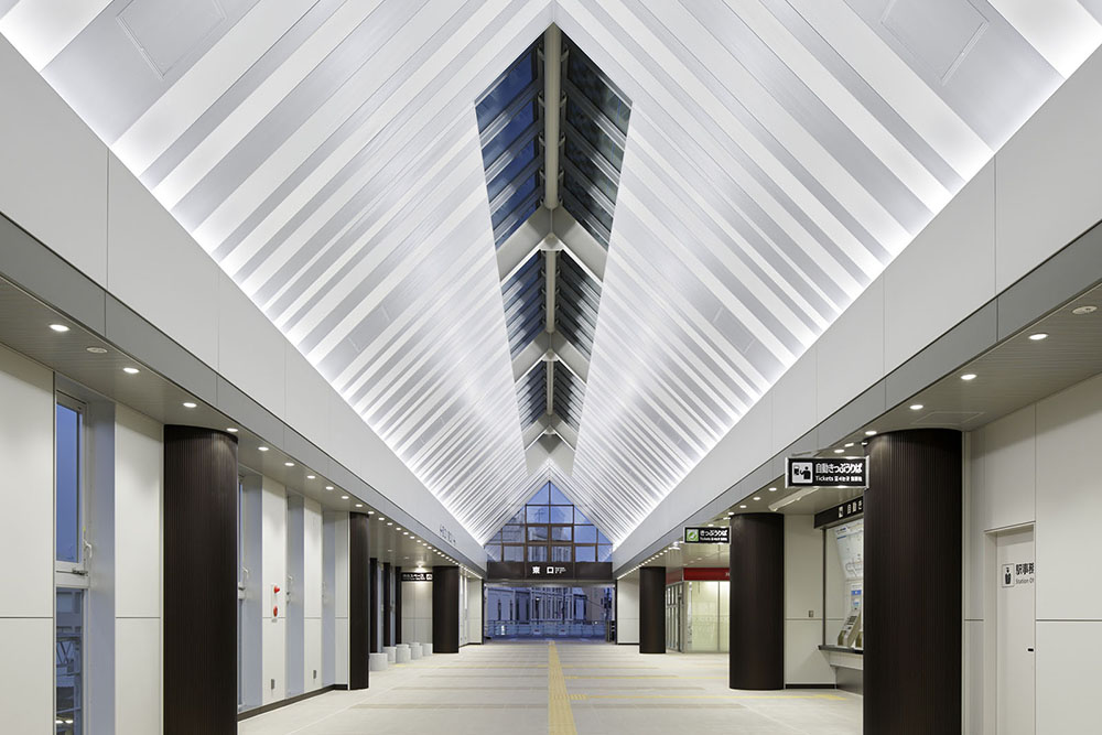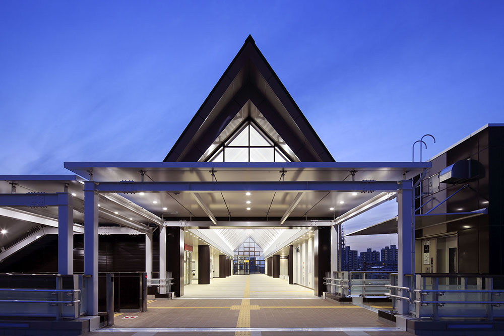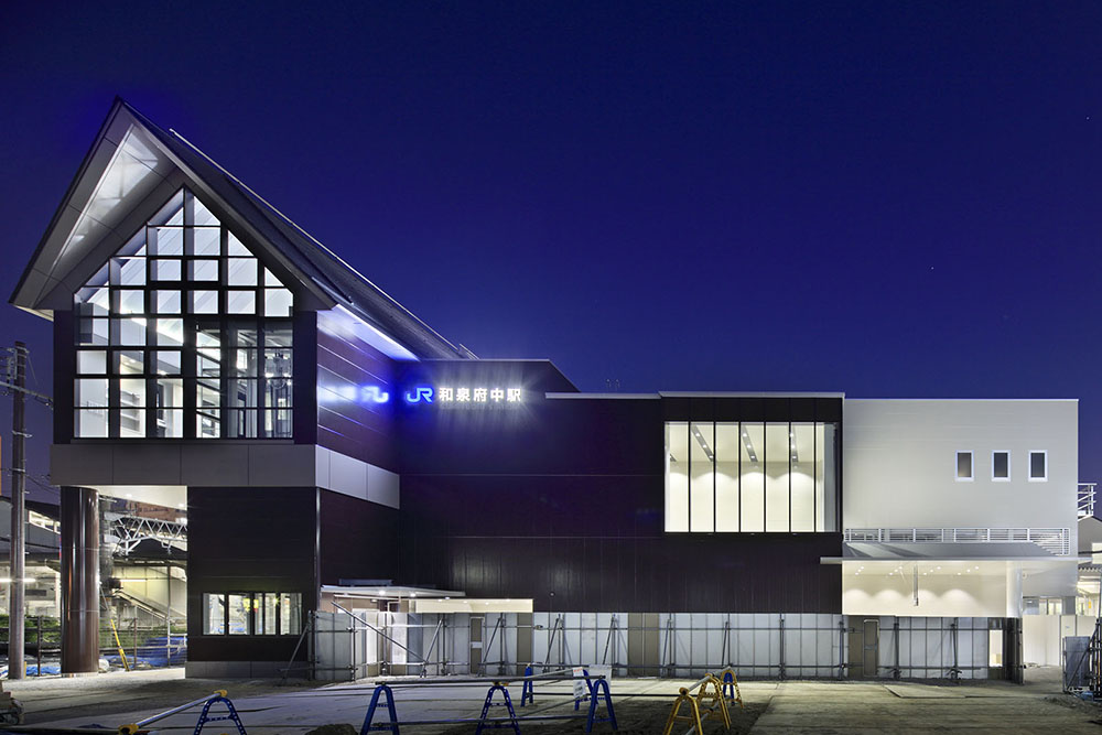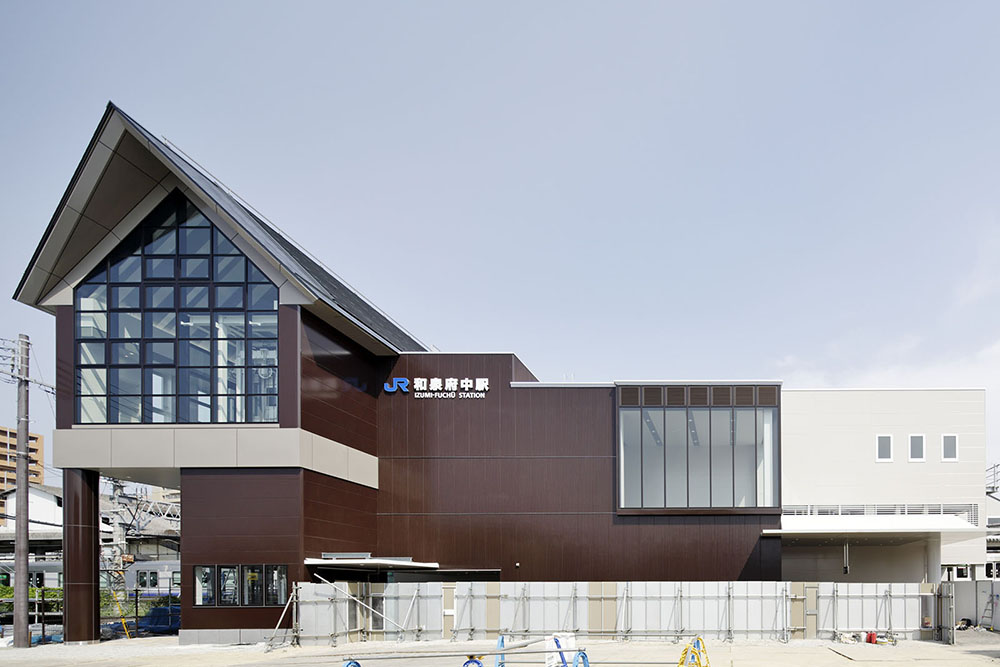 駅の立地する和泉市における代表的歴史建造物である池上・曽根遺跡をモチーフとしつつ、明るく開放的な空間を創出することをコンセプトとした自由通路・橋上駅である。切妻形状の屋根により遺跡を象徴化させると共に、ガラス面の開口を広く設け、街の玄関口としての賑わいが周辺へ波及することを期待した。