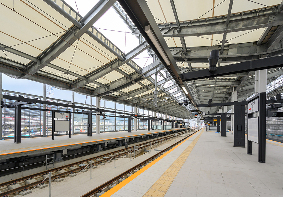 2020年3月28日に開業した長崎駅は、新幹線、在来線双方が乗り入れる日本唯一の頭端駅であり、海に開かれた駅としては世界にも類を見ない特徴を有している。「長崎らしさ」をテーマに長崎県工芸品のひとつである波佐見焼陶板やハルデスレンガをイメージしたタイルの使用、旅客上家には、膜屋根を採用し、照明が透過する設計とし、世界新三大夜景に一躍買っている。