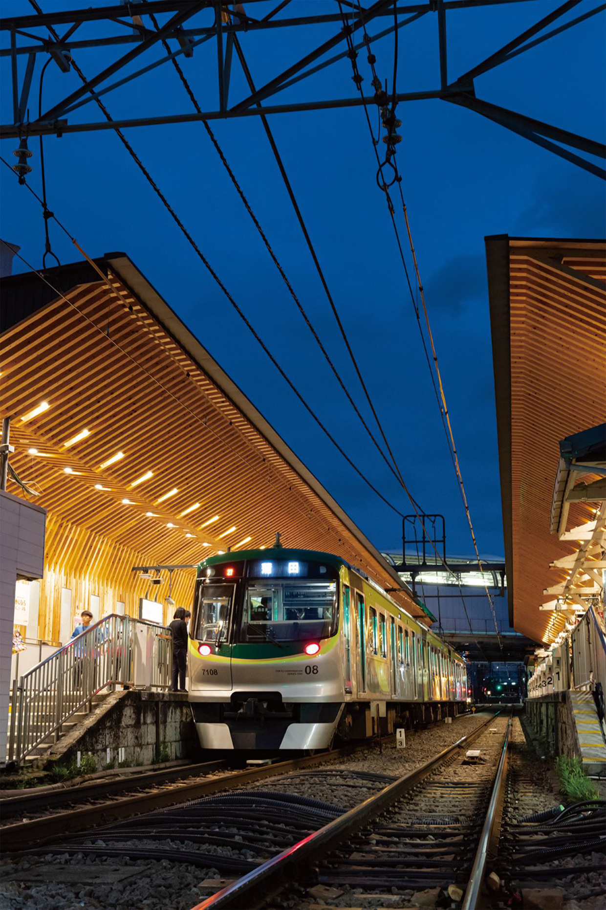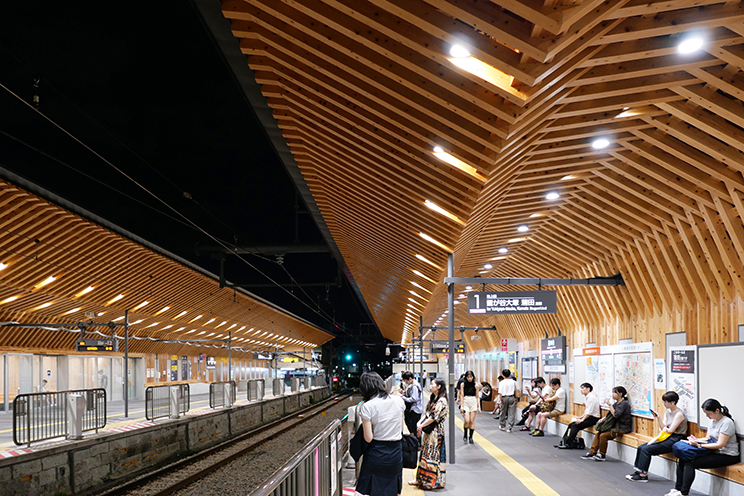 施工ヤードの狭さ等を考慮し、人力でも施工可能な正角材とCLTを併用し、駅施設の利便性は下げないよう既存上家は残しながら、その上部にホーム全体を包むような新しい上家を組み上げる架構とした。