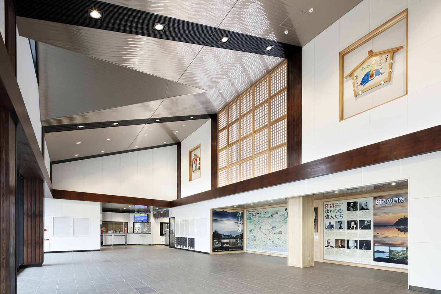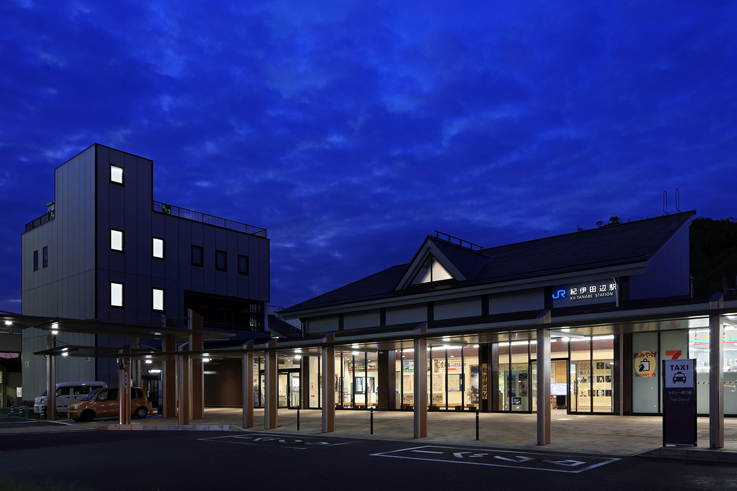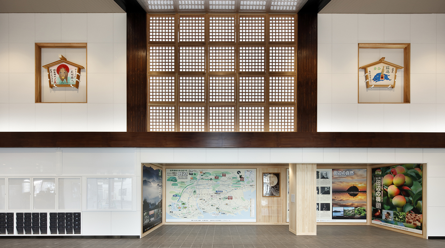紀伊田辺駅は和歌山県田辺市に位置する紀勢本線の駅である。旧駅舎は1932年に開業した築80年を超える木造駅舎で、耐震性能に課題があった。また、駅の南西側に海抜の低い市街地が、北東側に比較的海抜の高い丘陵地が広がり、津波浸水リスクも懸念されていた。耐震性と津波避難機能も備えた、世界遺産熊野古道の玄関口として駅舎の建替を実施した。