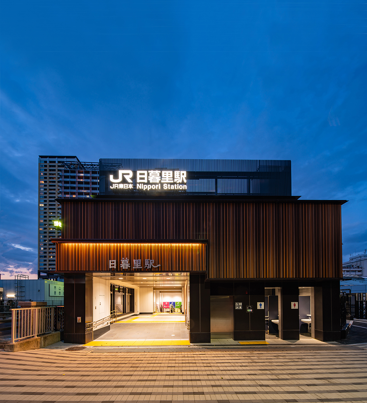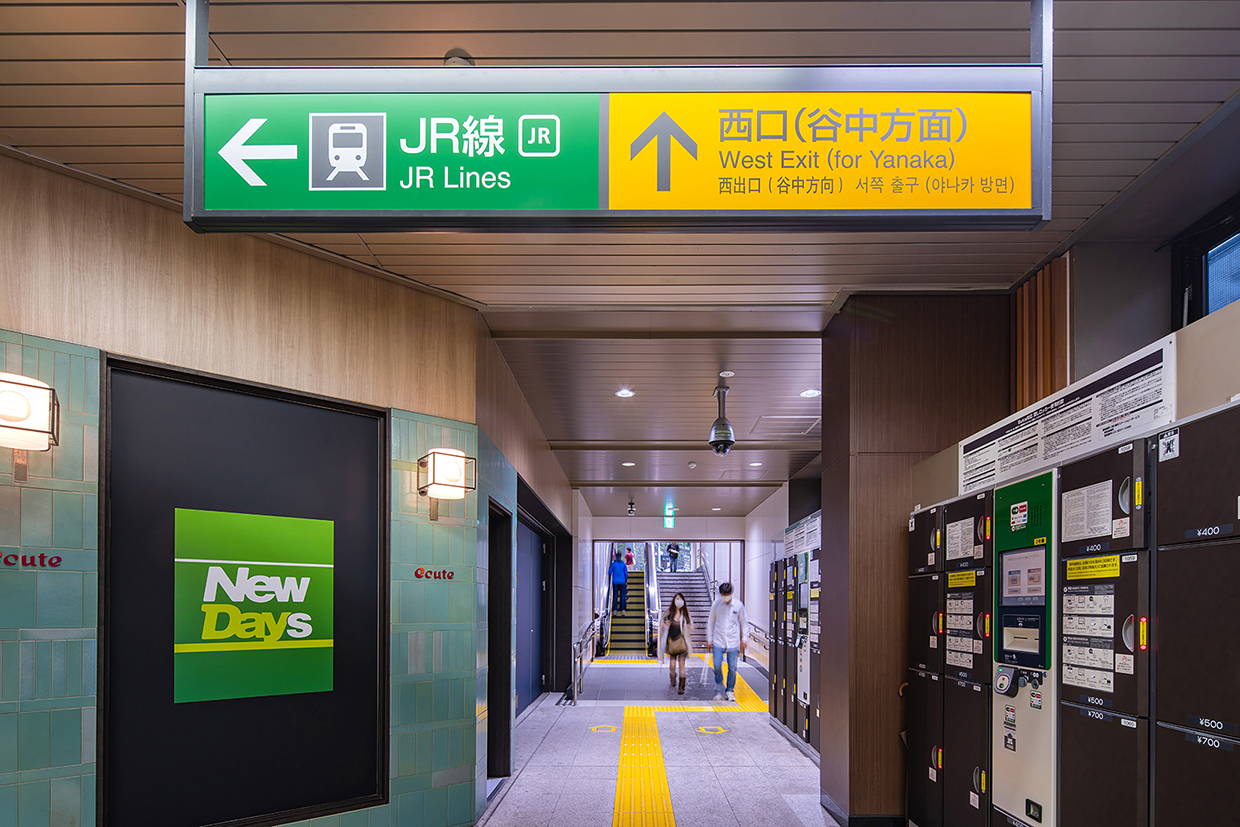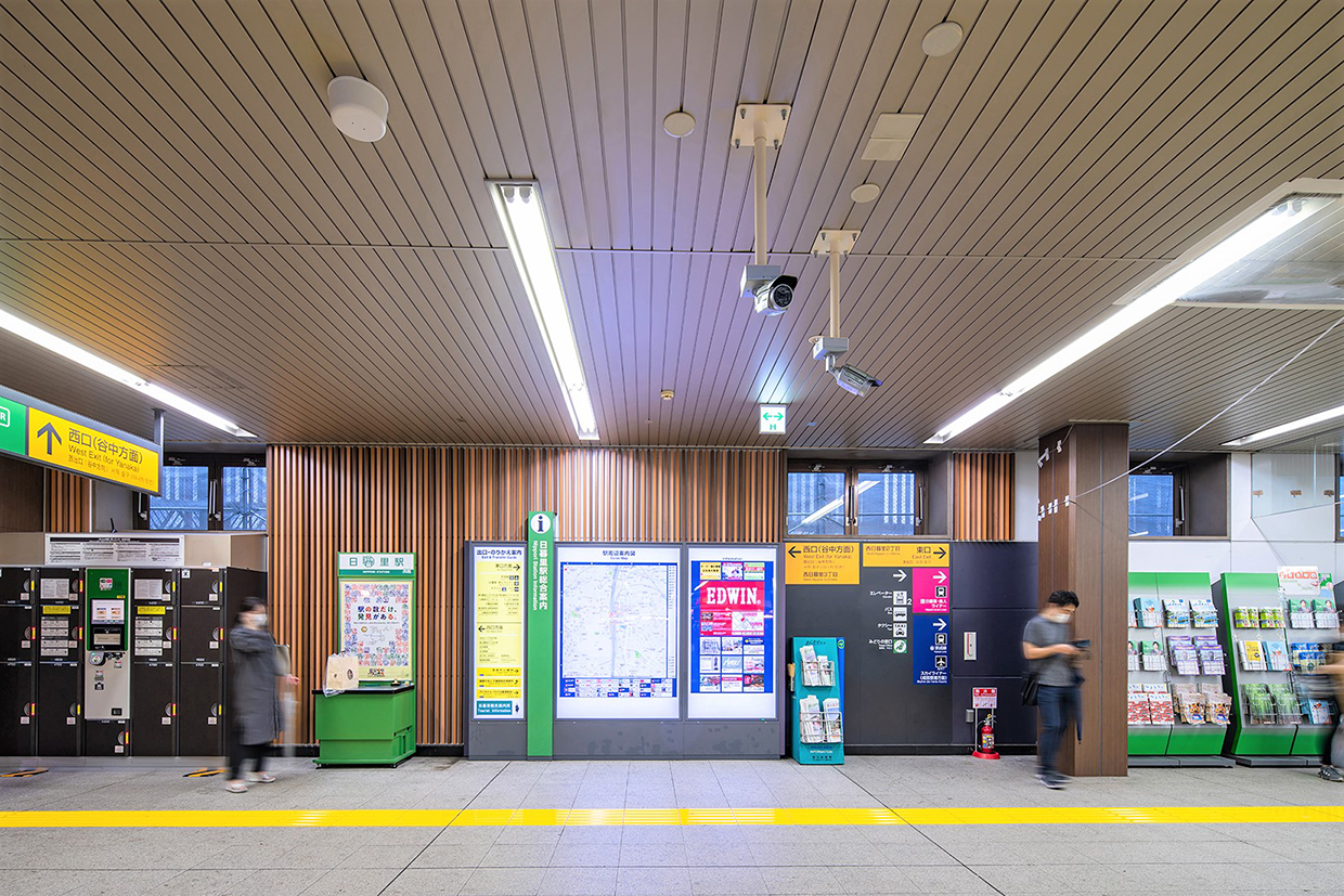 日暮里駅は、周辺に下町の街並みが続き、多くの観光客が訪れる谷根千エリアが近いほか、成田空港とも直結し、国内外の観光客を呼び込むのに最適な場所に位置している。一方既存駅舎は、通勤駅としての色合いが強く、無機質な空間になっていた。そこで、地域特性を生かしたデザインでリニューアルすることにより、街の顔となる駅空間を実現した。