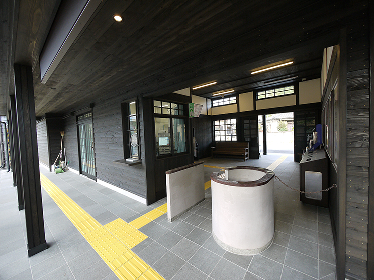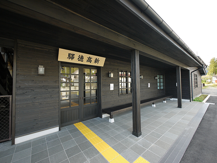 東武鬼怒川線においては、SL大樹の運行開始以降レトロ化を進めており、新高徳駅についても統一した世界観を今回つくり出した。内外装の木質化を推進し、色味や外壁の下見板張り、縁側の設置や駅名板などレトロ感を表現している。登録有形文化財に指定された昭和4年築のホーム上家も補修を行い、調査により当時の色や軒先の鼻隠しを復原した。
