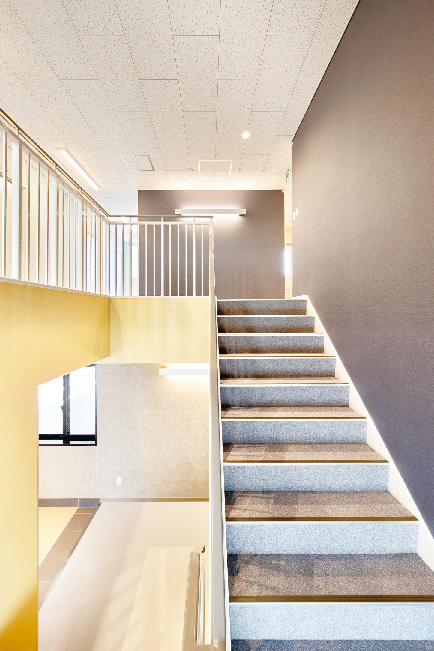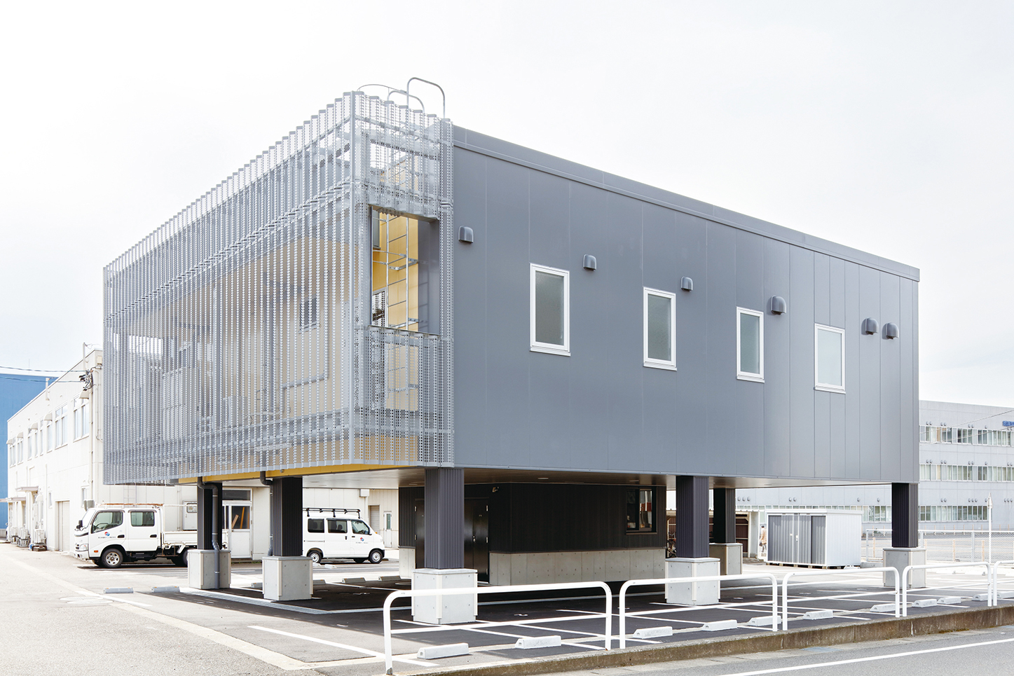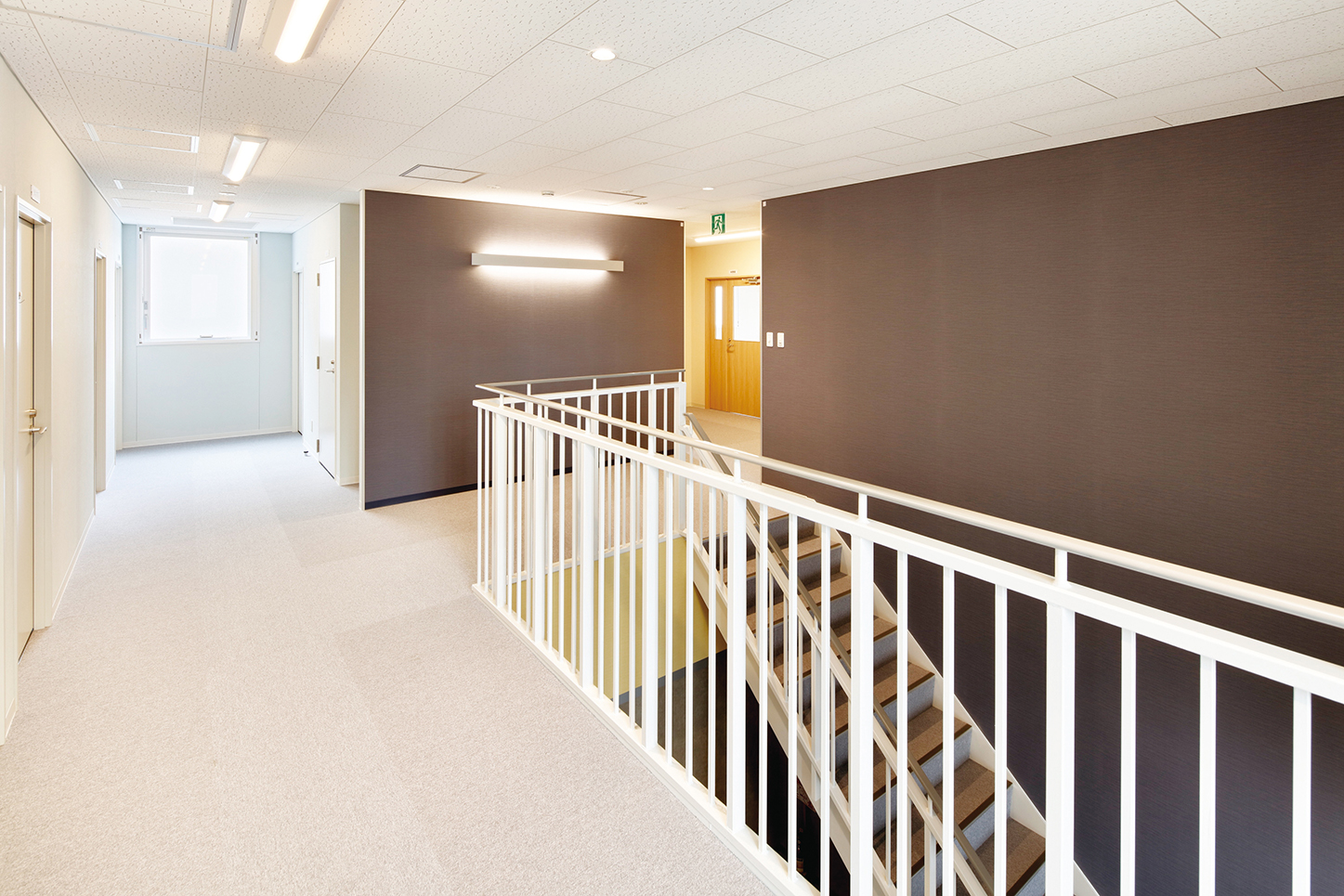 駅前の線路沿いに建つ男性8名用の乗務員宿泊所である。1階は駐車場のためピロティで、中央部分に階段をコンパクトにまとめており、2階は必要所室を最小限にレイアウトしている。外観は周囲のまちなみと呼応した色調や素材を選定しており、内部は「睡眠」と「起床」をコンセプトに、「色彩」「光」「音」環境に配慮したつくりとなっている。