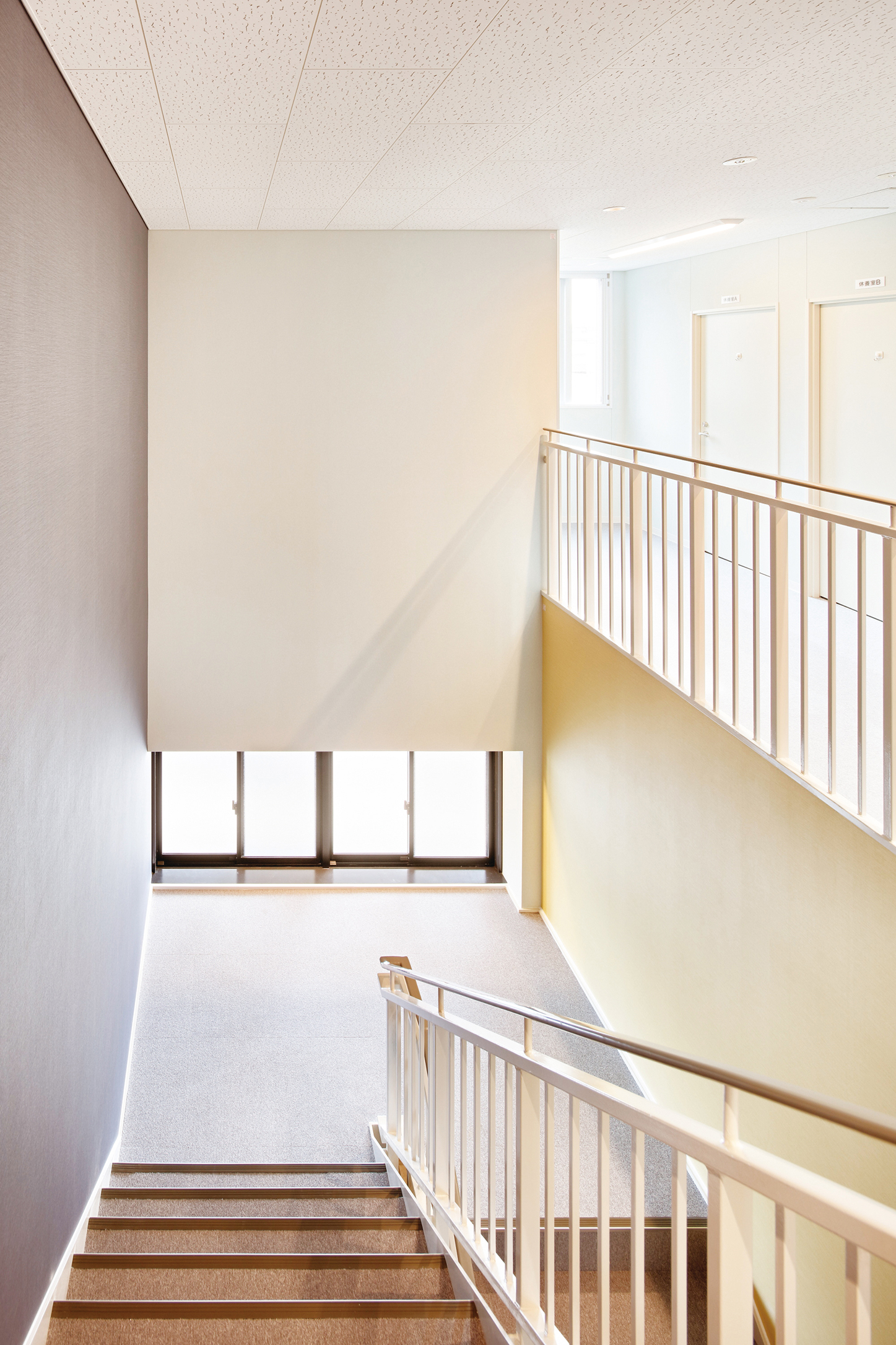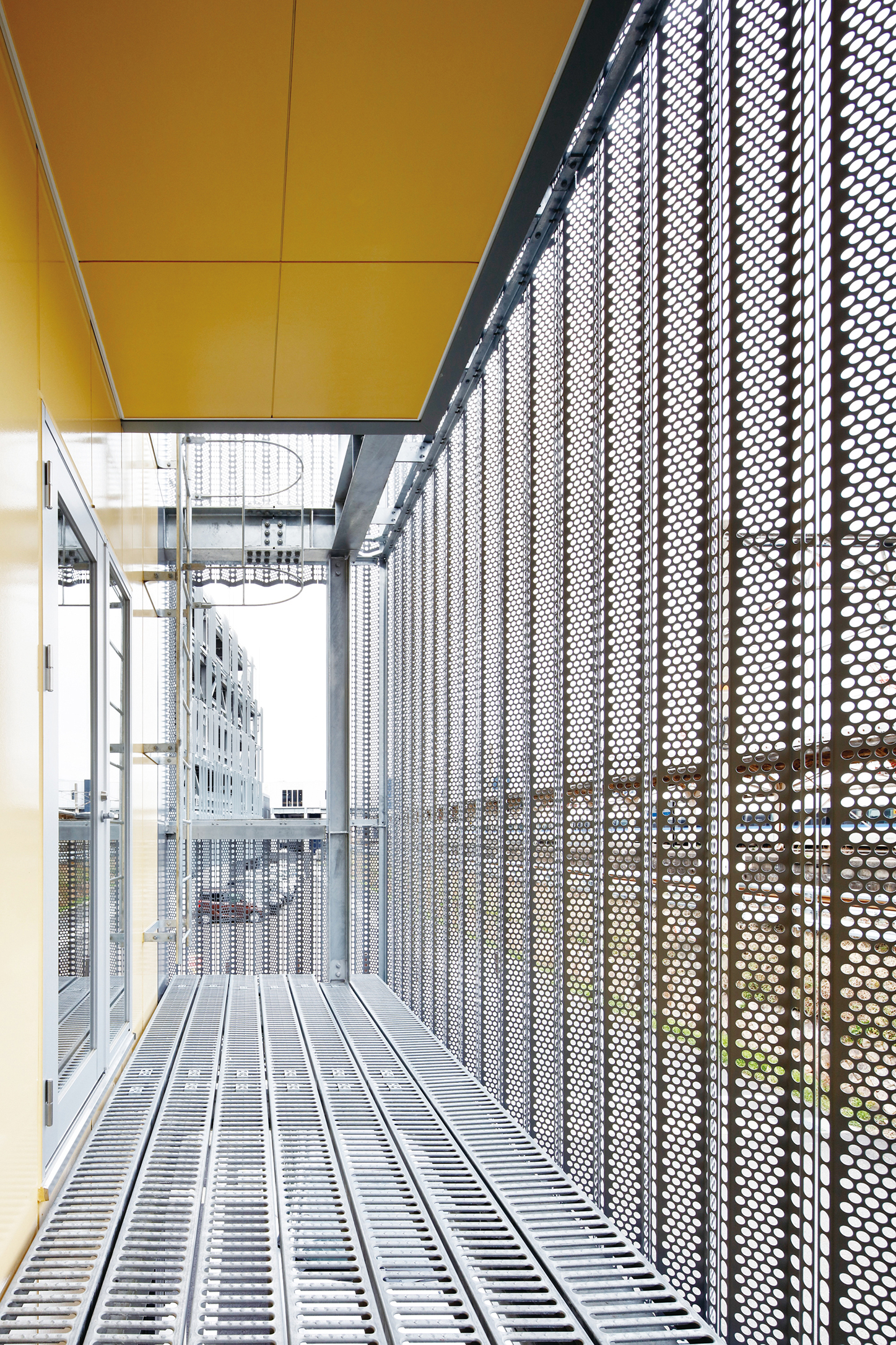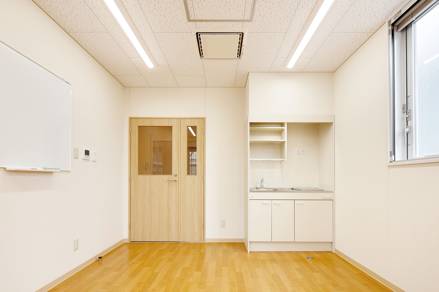 駅前の線路沿いに建つ男性8名用の乗務員宿泊所である。1階は駐車場のためピロティで、中央部分に階段をコンパクトにまとめており、2階は必要所室を最小限にレイアウトしている。外観は周囲のまちなみと呼応した色調や素材を選定しており、内部は「睡眠」と「起床」をコンセプトに、「色彩」「光」「音」環境に配慮したつくりとなっている。