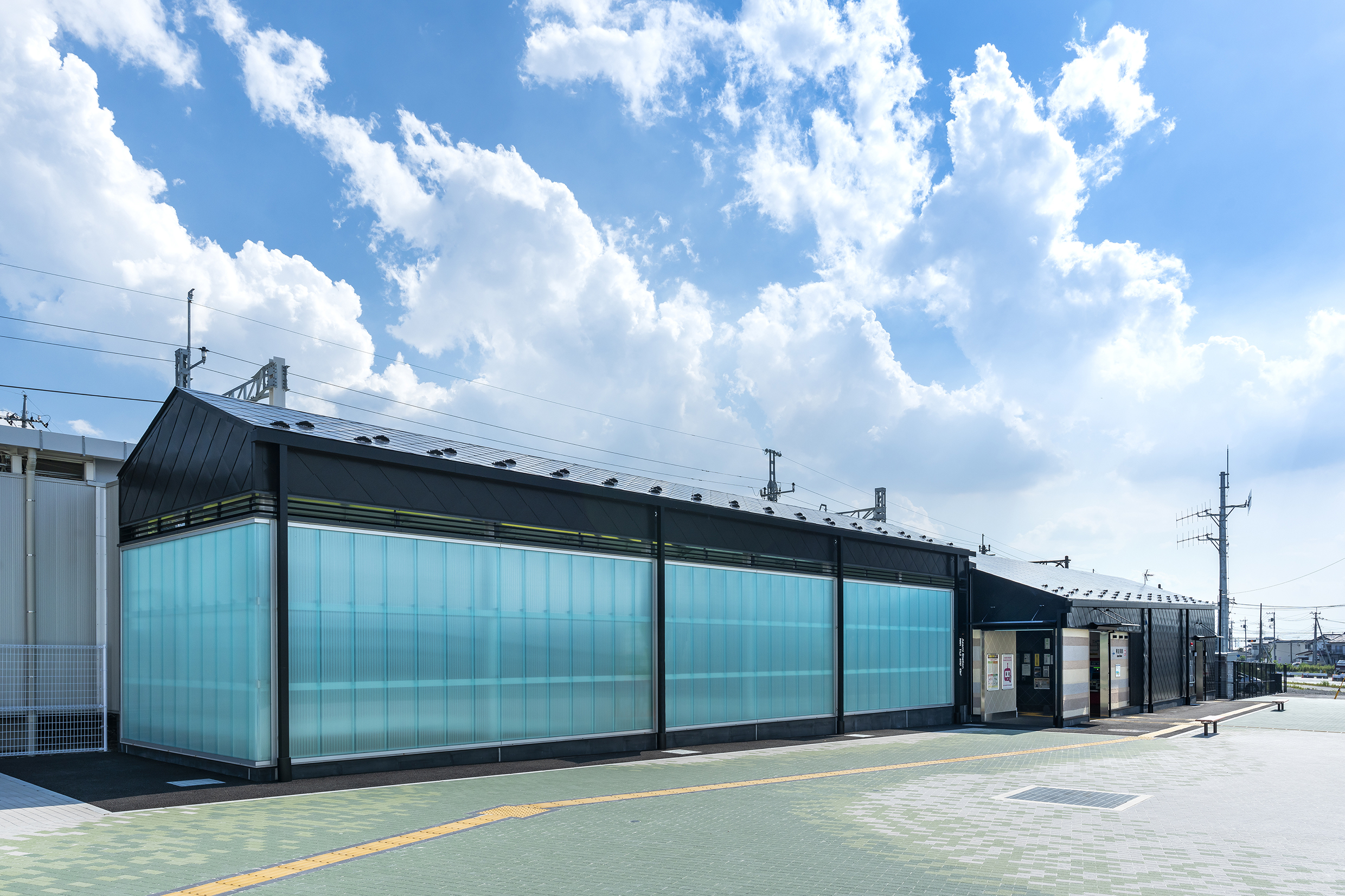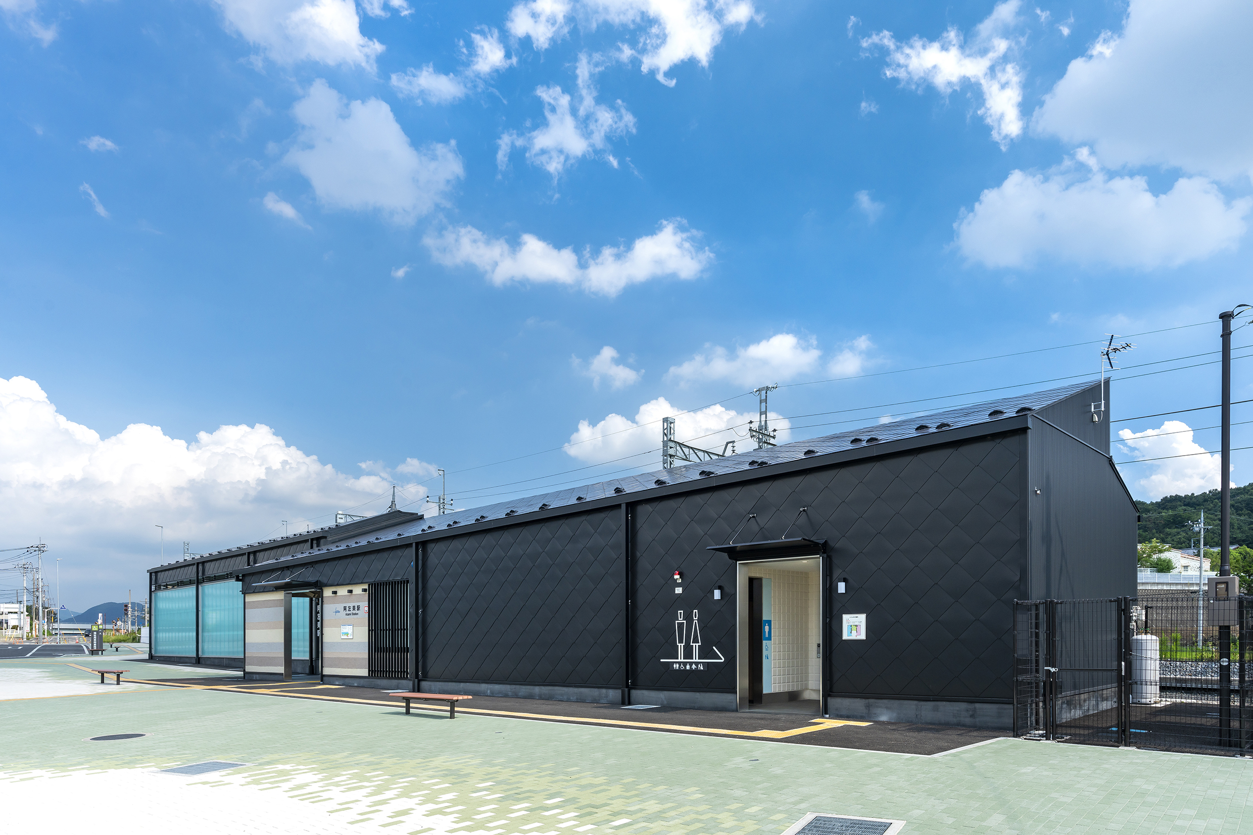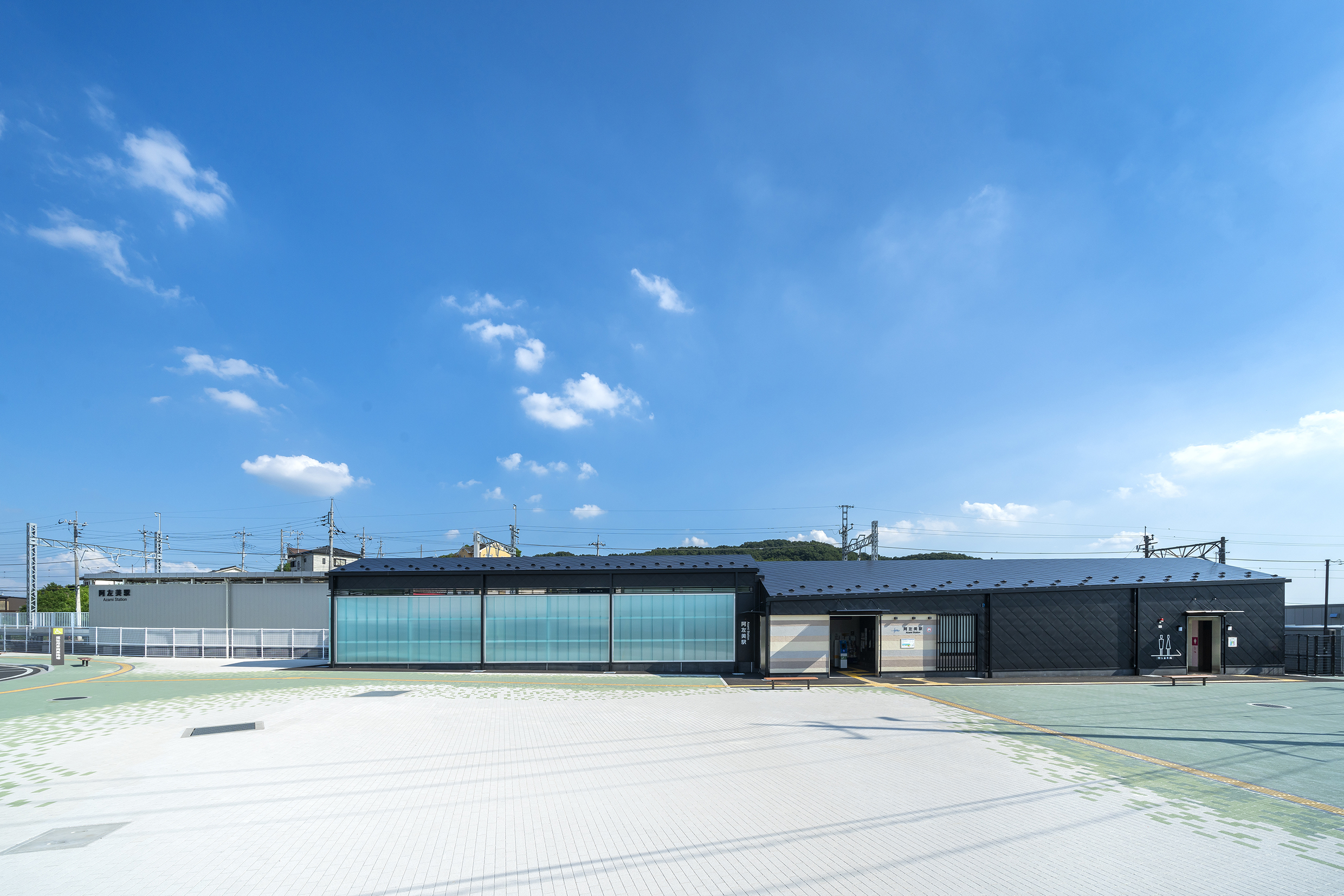 阿左美駅は1937(昭和12)年に開業し、その後のホーム拡幅工事中に縄文時代の住居跡が発掘され県史跡に指定されて以降、みどり市内の岩宿遺跡と共に貴重な遺産として現代まで伝えてきました。今回の移転にあわせて柔らかな自然光溢れる駅舎全体に、地域の財産として旧時代を彷彿とする黒曜石や地層をモチーフとしたデザインを施しました。