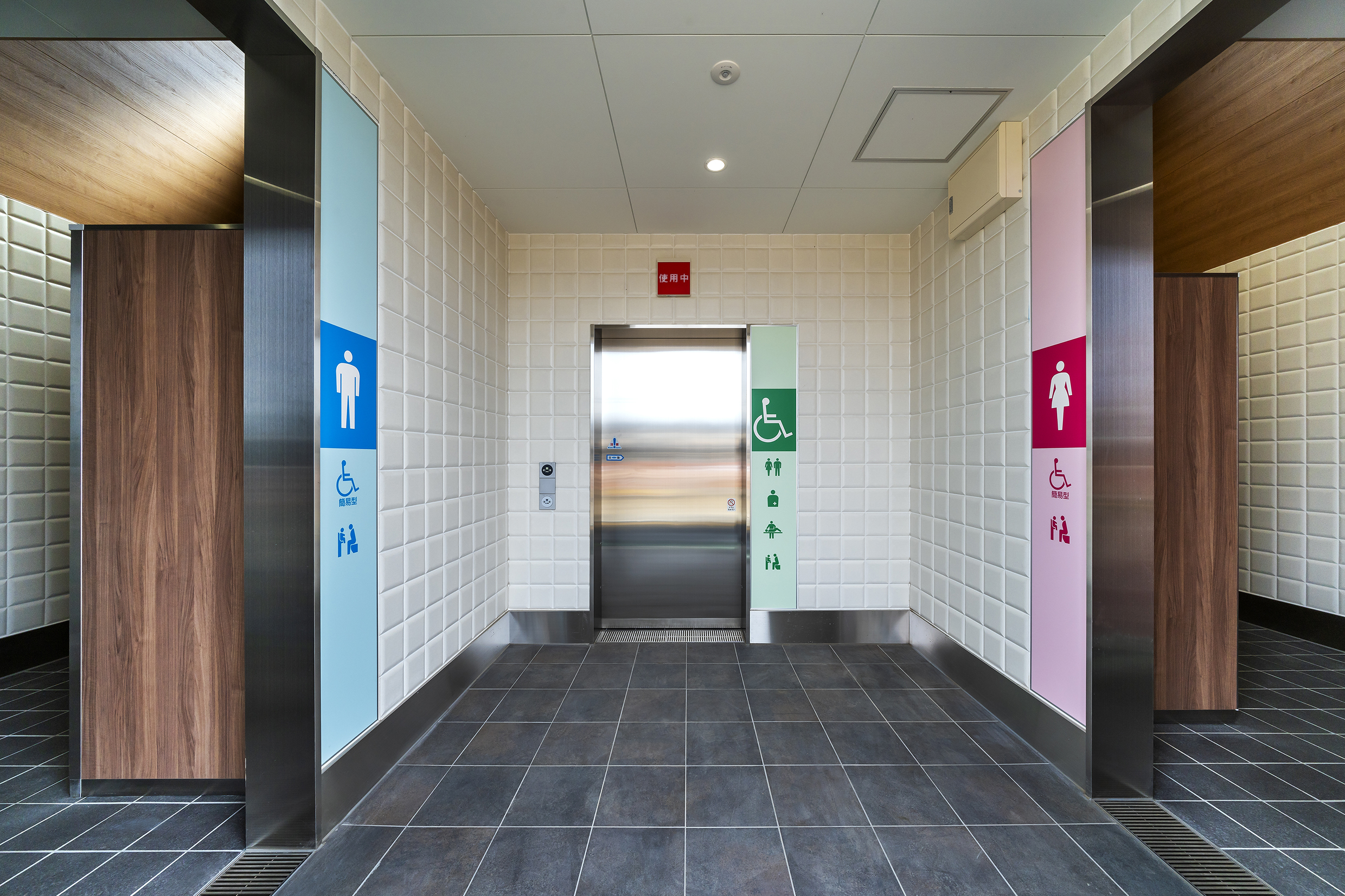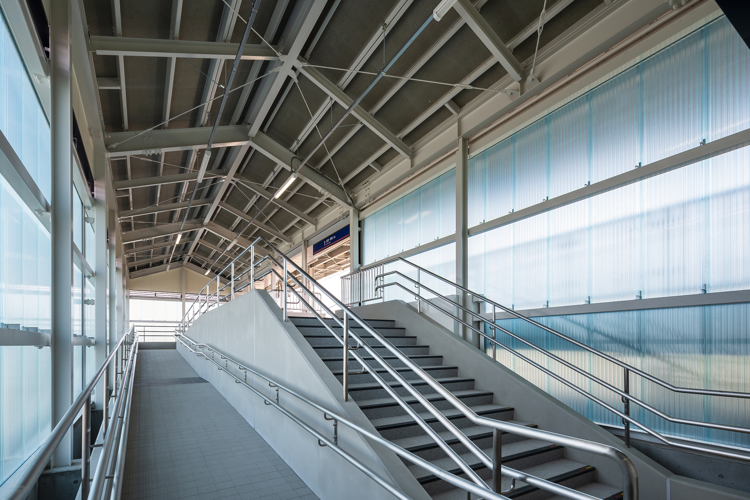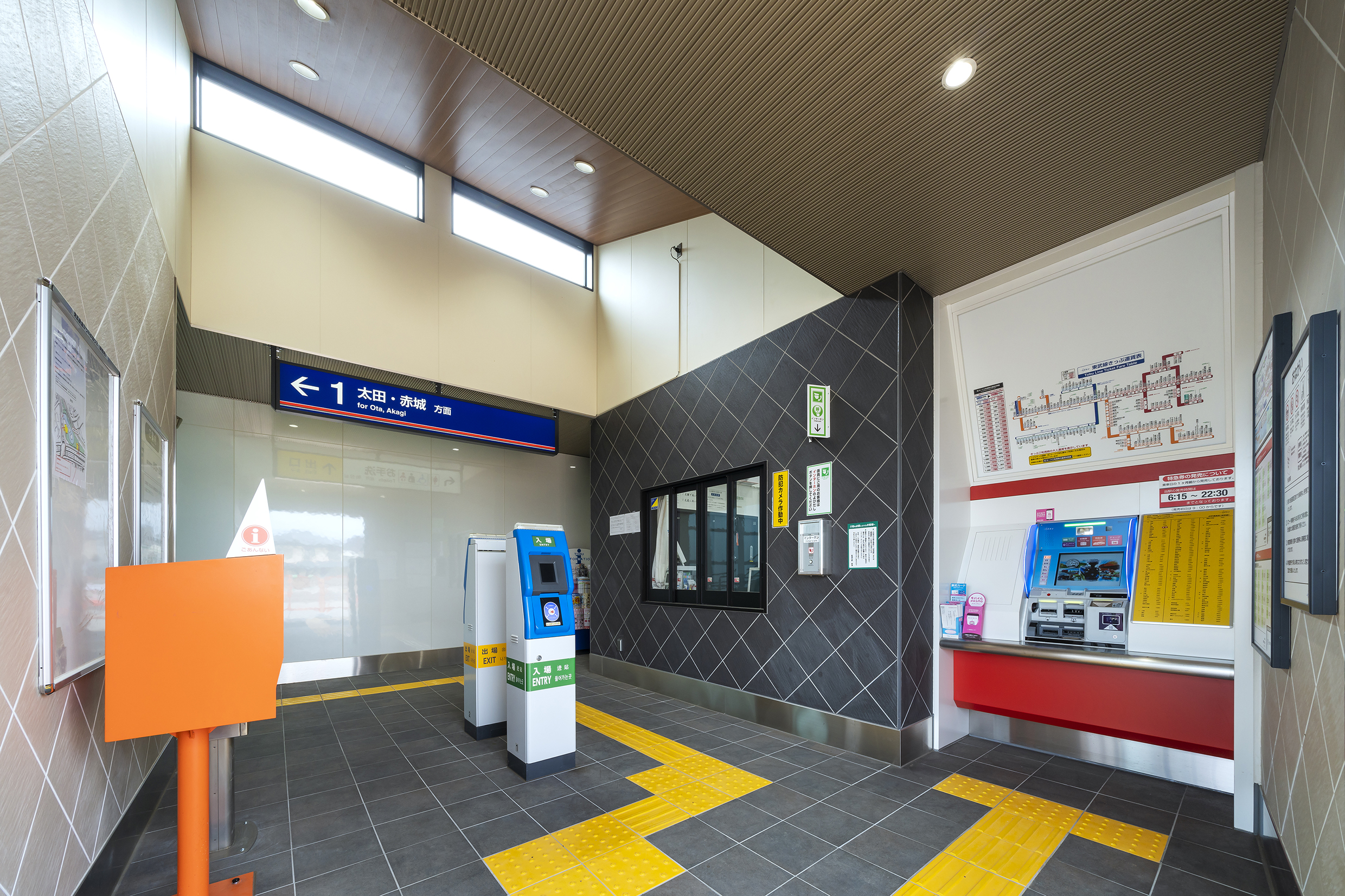 阿左美駅は1937(昭和12)年に開業し、その後のホーム拡幅工事中に縄文時代の住居跡が発掘され県史跡に指定されて以降、みどり市内の岩宿遺跡と共に貴重な遺産として現代まで伝えてきました。今回の移転にあわせて柔らかな自然光溢れる駅舎全体に、地域の財産として旧時代を彷彿とする黒曜石や地層をモチーフとしたデザインを施しました。