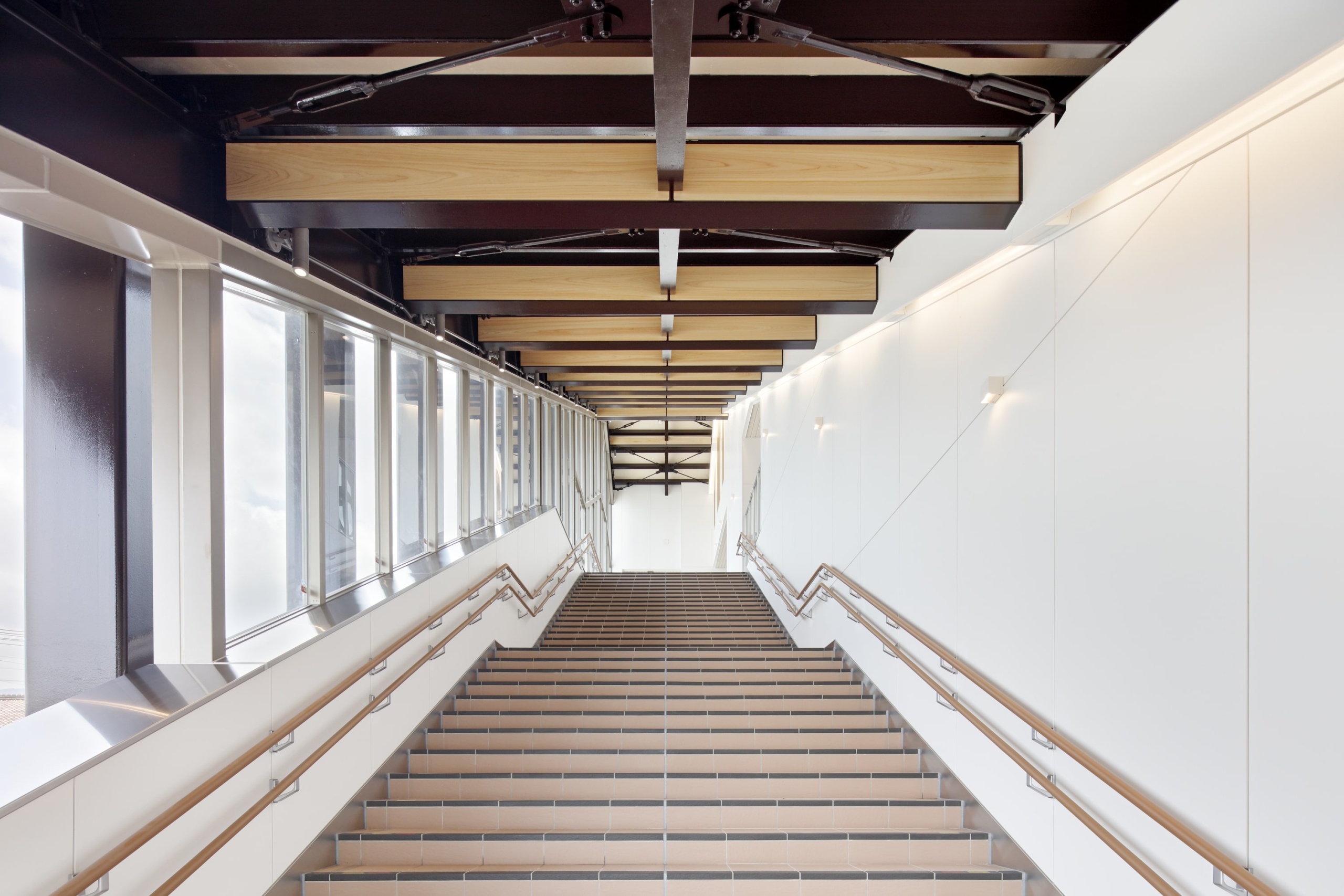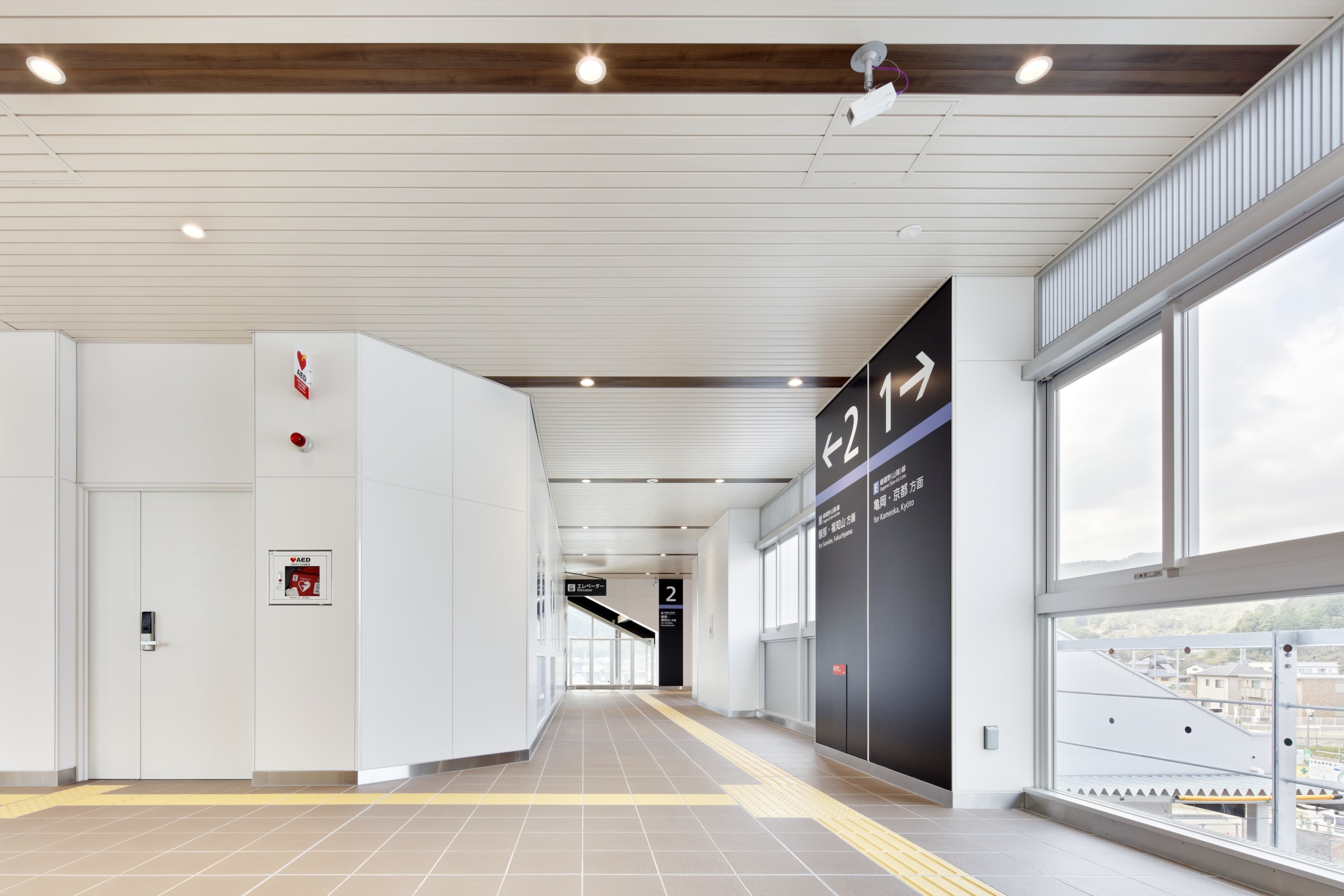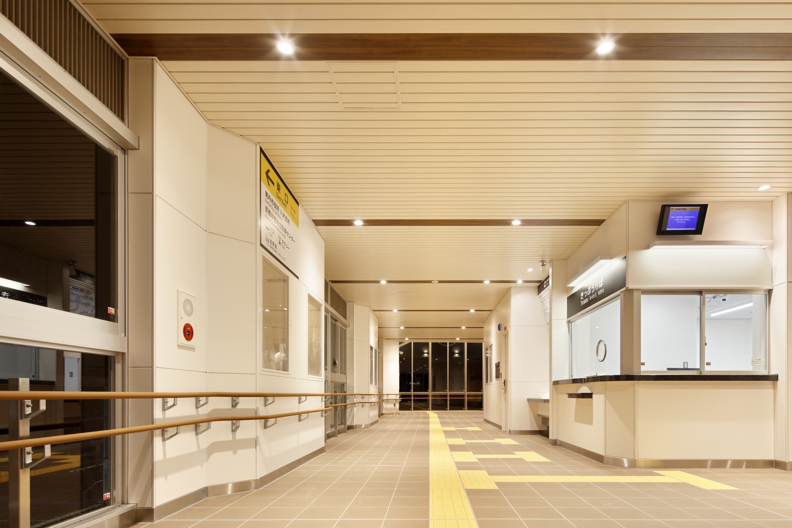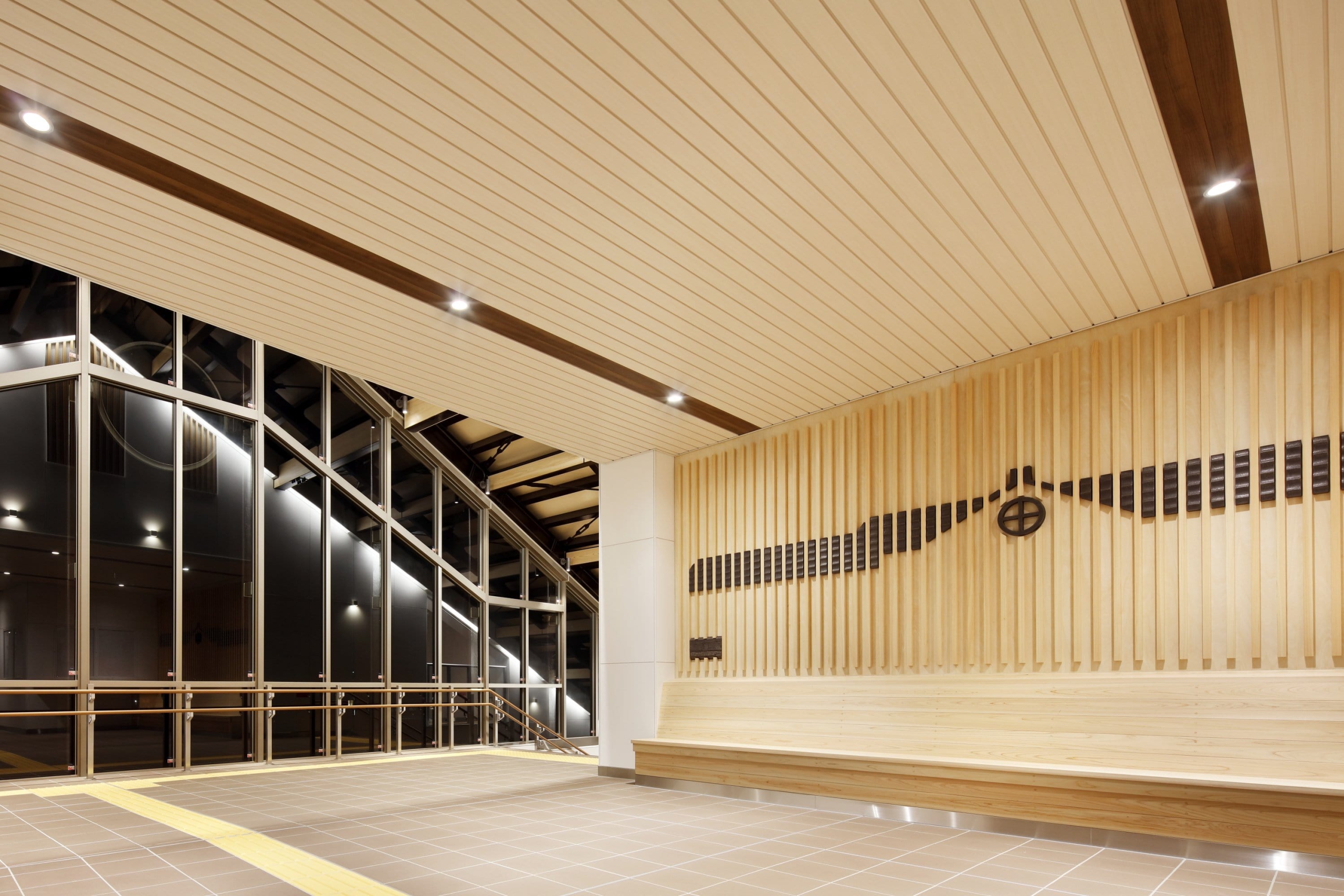 BF未整備で東西の行き来が出来なかった駅を、EVが設置された自由通路及び橋上駅に新築移転し、駅の利便性向上・利用促進を図った。山並みを表現した勾配屋根や、地域のシンボルである橋を構造体で表現し、周辺と調和するようなデザインとした。旧駅舎の面影を、ファサードや待合スペースで表現し、地域の方々に愛される工夫を行った。