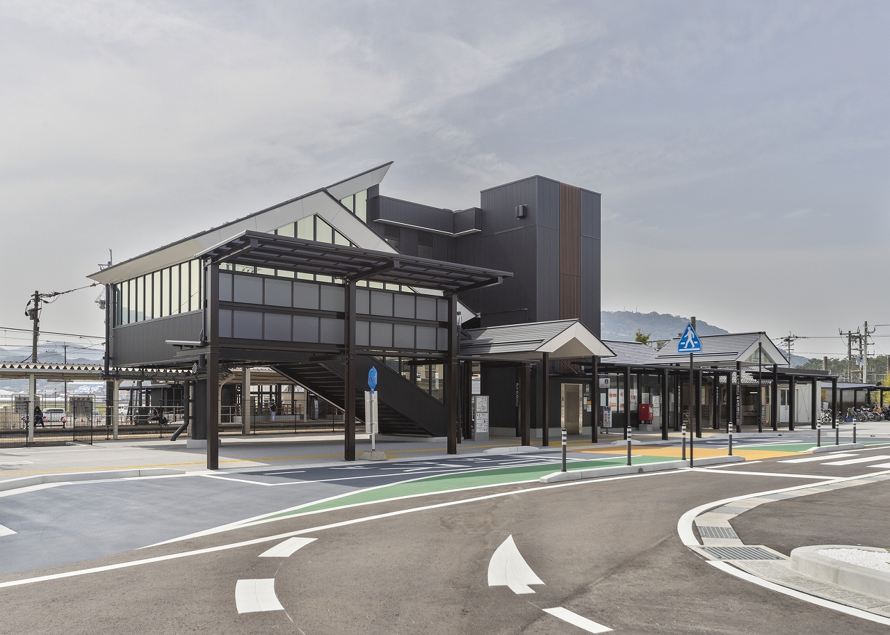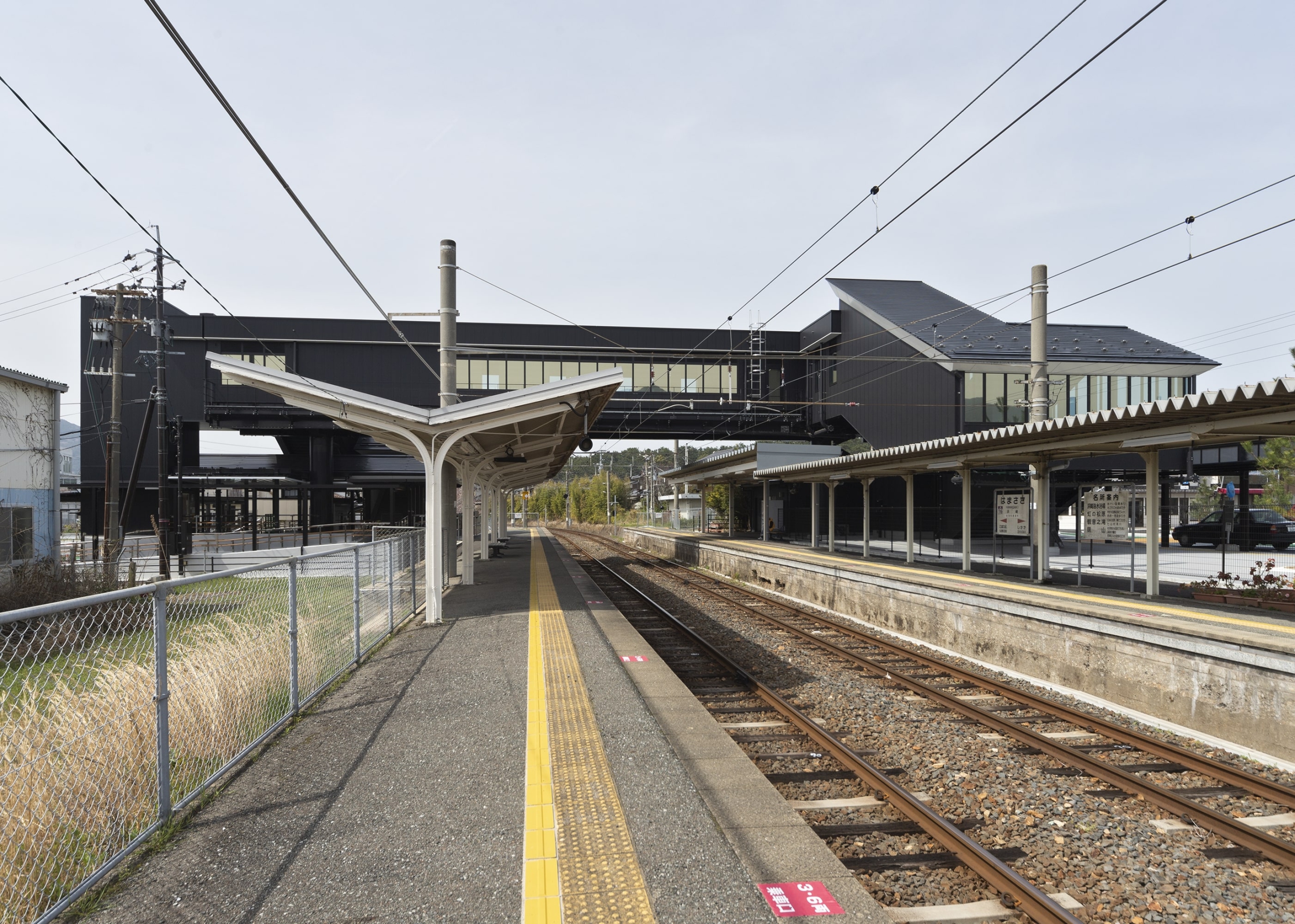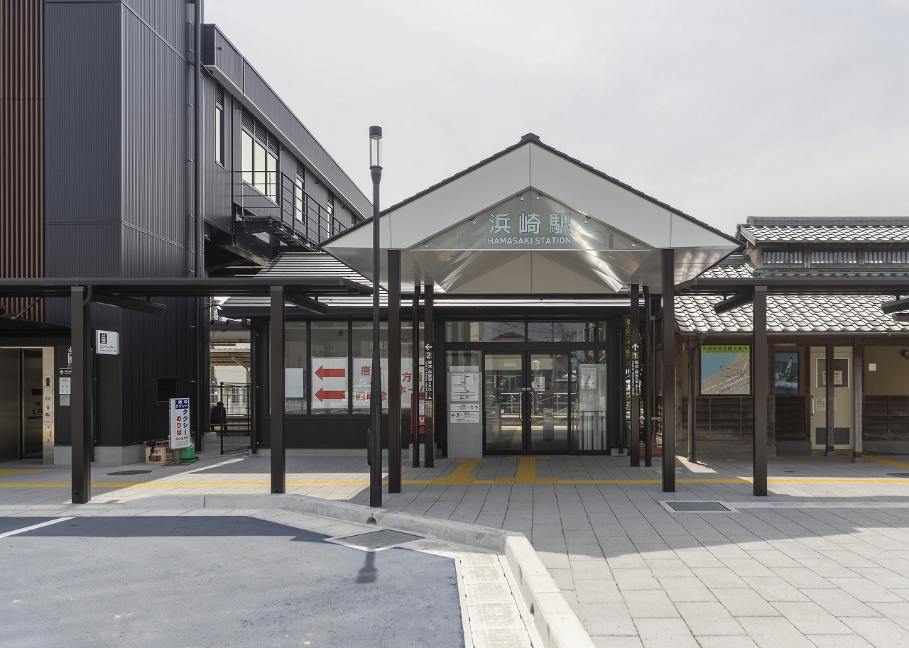 佐賀県唐津市の東に位置する浜崎駅は、駅舎やこ線橋の老朽化が進み、南側からのアクセスも遠く、課題の多い駅であった。今回、南北自由通路を新設し、南口改札を新設することで、駅の利便性向上およびバリアフリー化を実現できた。また、デザインも新駅舎と自由通路を一体的に検討し、旧駅舎のシンボルであった切妻屋根の形状を採用した。