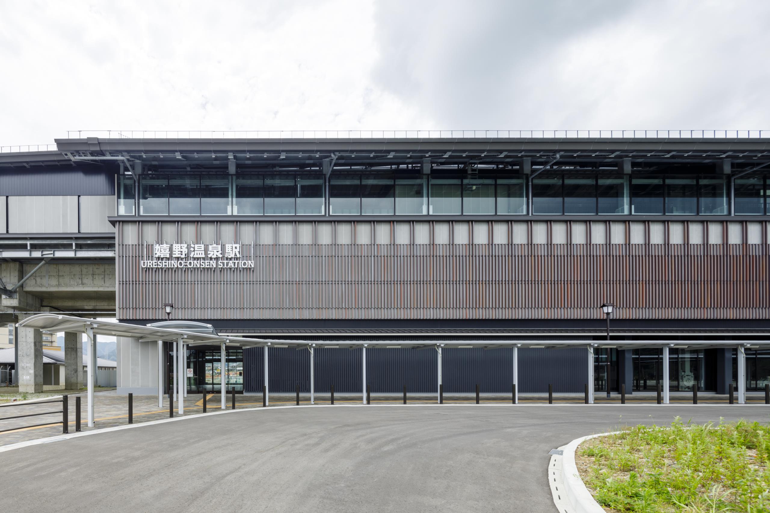 軒の深い切妻屋根や焼物の縦格子など、嬉野の湯宿の装いを和の構成で表現した。ハイブリッド構造の採用で設計の自由度を獲得しつつ工期短縮とコスト縮減を図った。