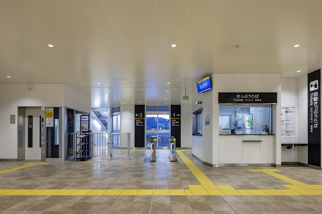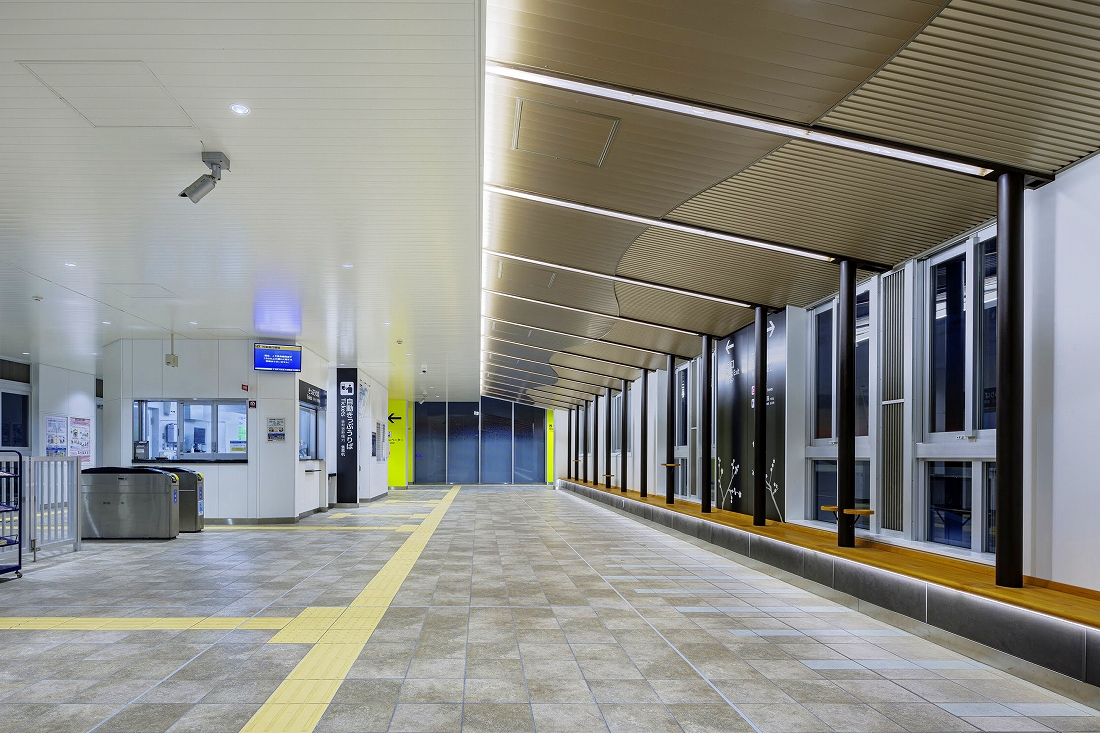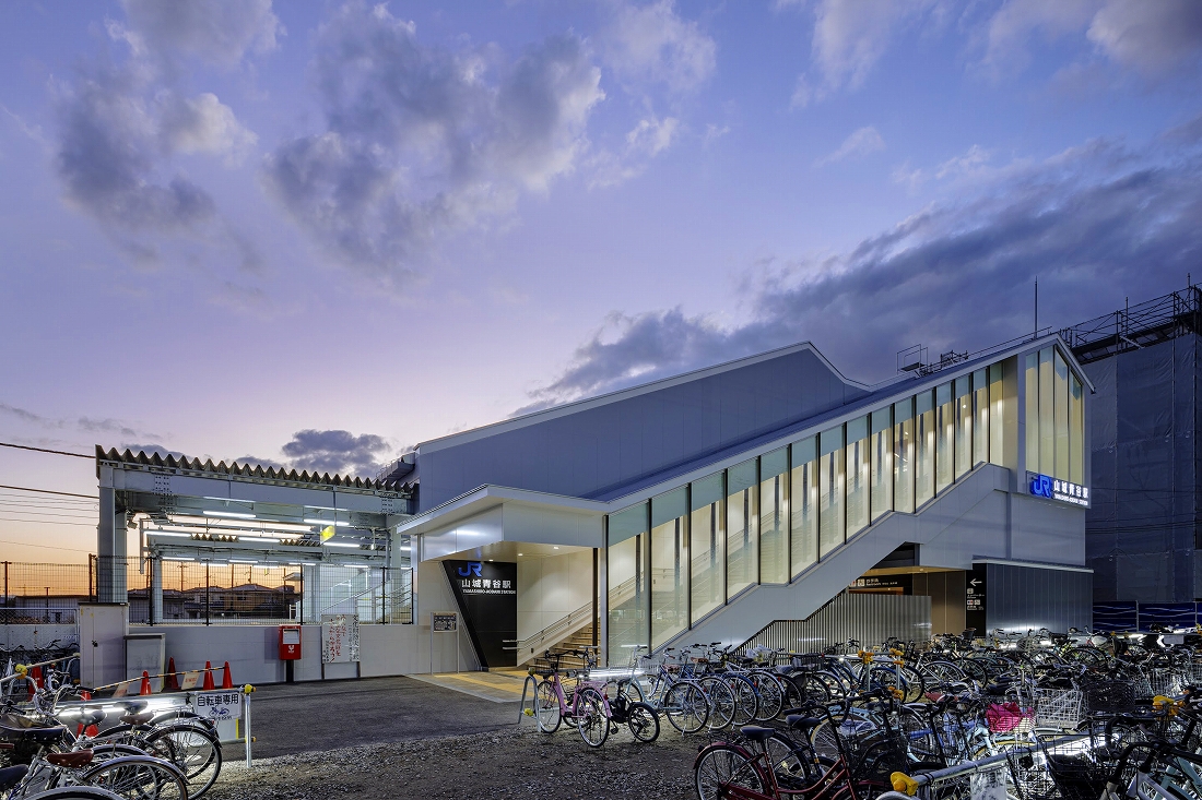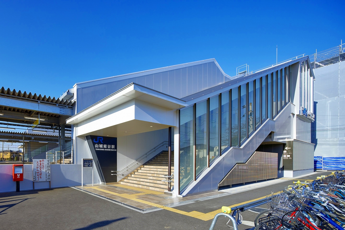 奈良線第2期複線化事業の一環で、新たな青谷地域の玄関口として橋上駅舎・自由通路を整備した。