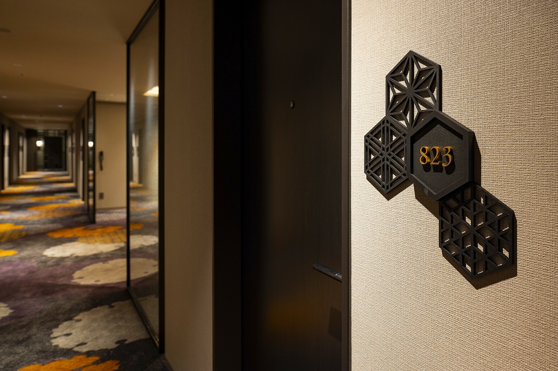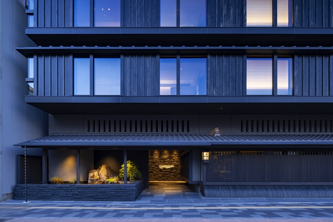 京都ならではの間口の狭い敷地を活かし、玄関から通り庭を経てロビーまで導くことで京都ならではの町屋の空間を表現した。