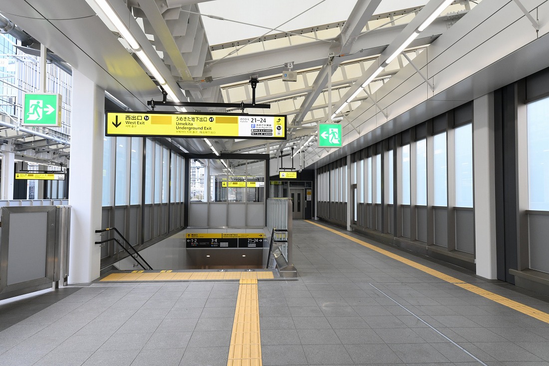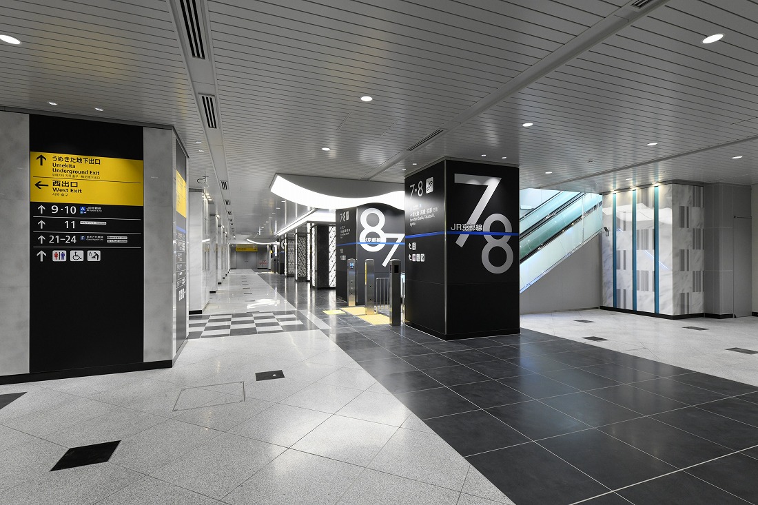 大阪駅西地区の中央に位置する既存高架下において、大阪駅の更なる活性化と乗換利便性の向上を図るため、新たな改札口(西口)を設けると共に高架下店舗開発を行う。