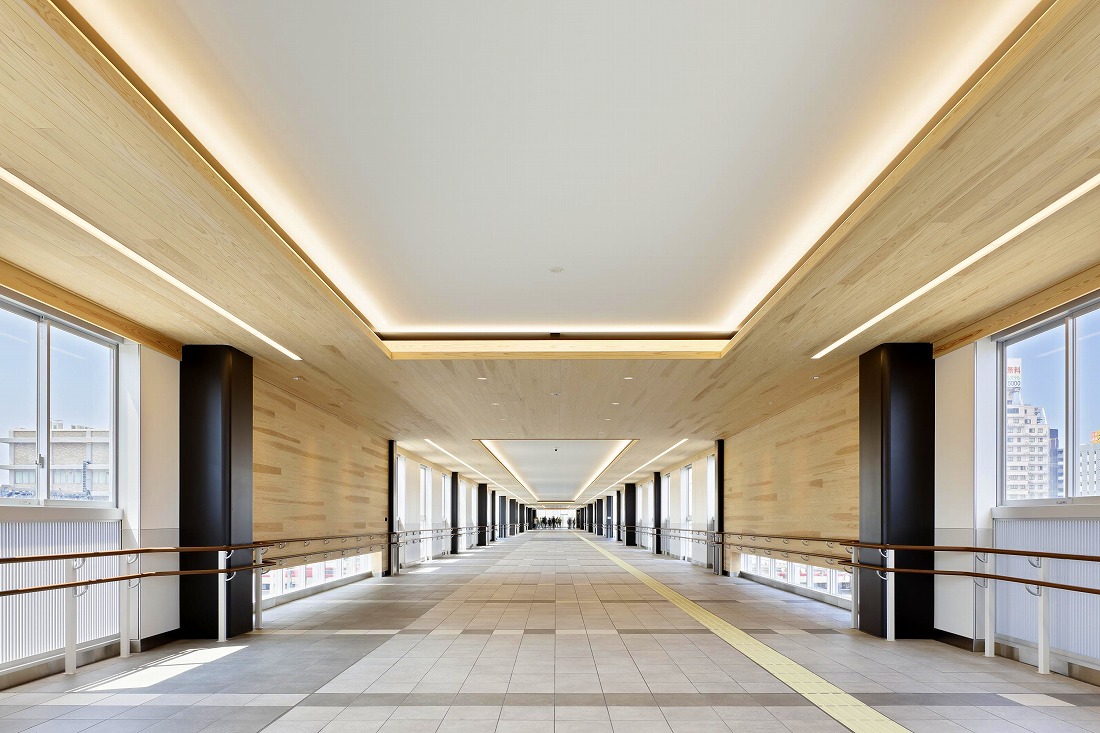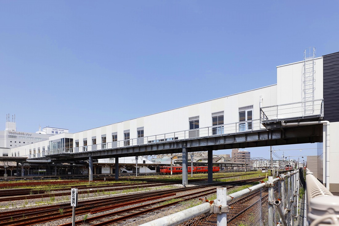 17本もの線路によって分断された南北地区を連絡する自由通路(140m)および駅舎を整備した。狭隘な施工ヤードで構造スパンも27mと大きく、施工難易度が非常に高いプロジェクトであった。新たな米子の象徴として、伝統工芸品・県産木材・ご当地キャラクター・山陰の特急列車など、地域連携しながら山陰らしいデザインを設計施工した。