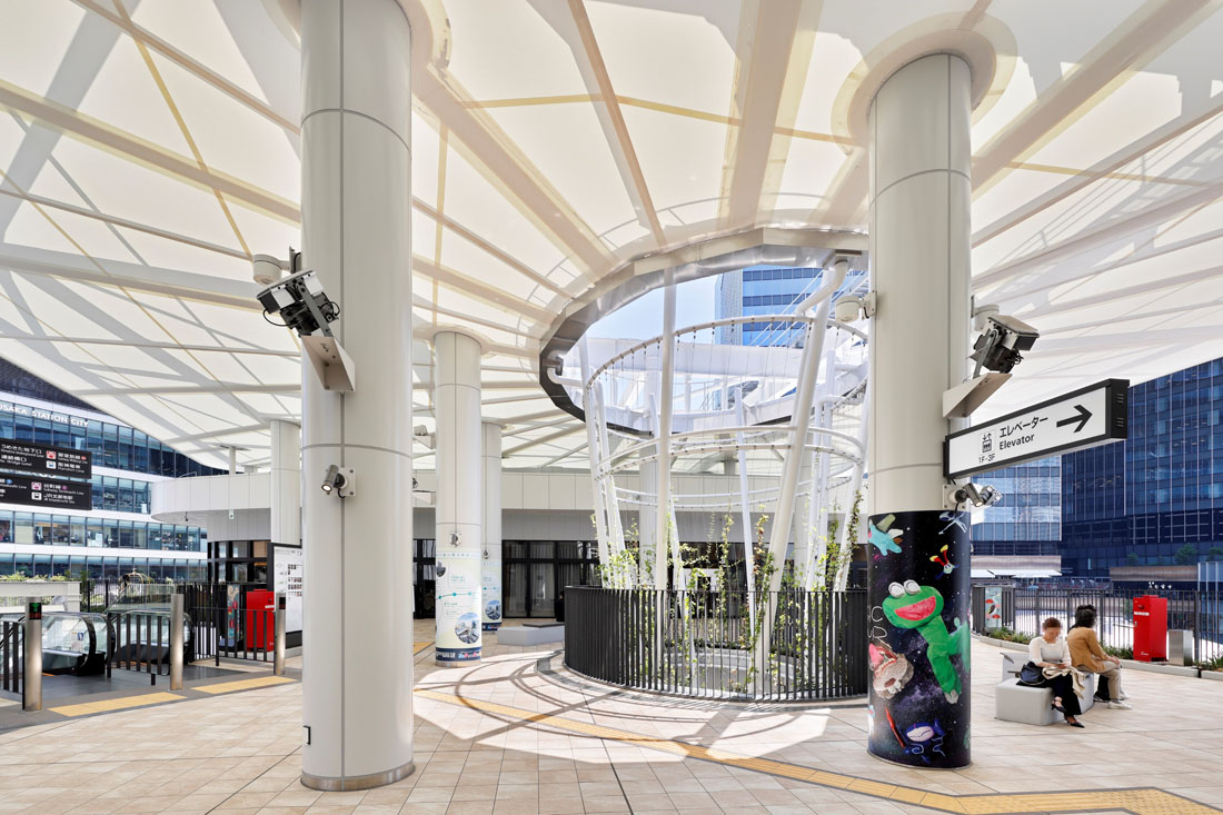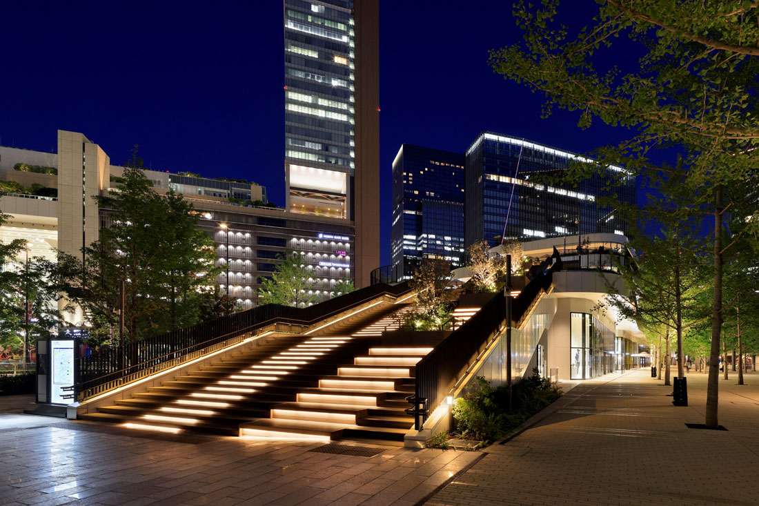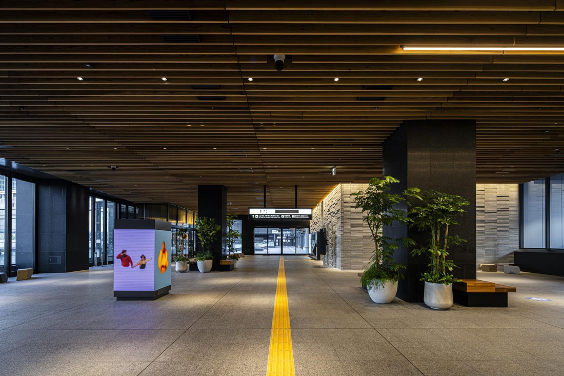 UGP:巨⼤ターミナル駅と直結する⽴地で、みどり豊かな広場や、降り注ぐ⾃然の光と⼼地よい⾵を感じられる憩いの空間を提供する
