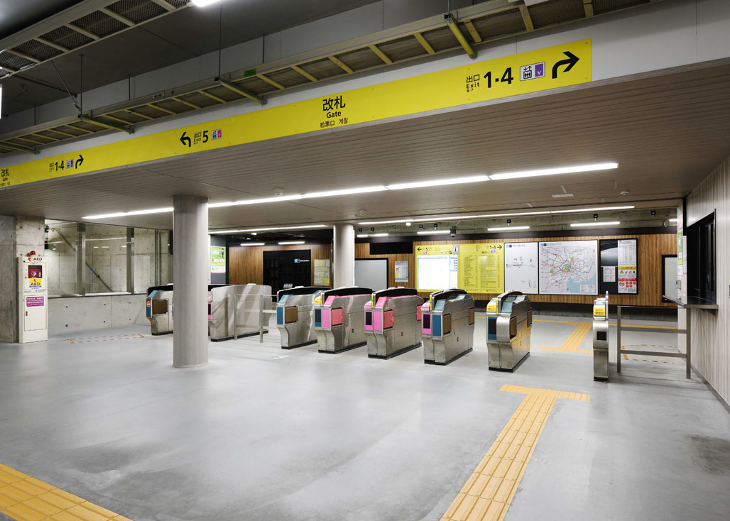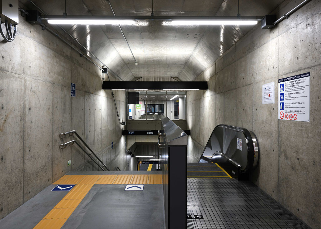 改札前広間の天井部には、100m2超の大型トップライトを設置し、地下でありながらも開放的な空間を演出した。