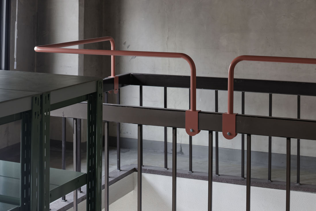 • 特徴的な仕上げ材屋根:高架下建物のため屋根無し/外壁:既存外壁の上、塗装/建具:米栂框引戸/天井:既存RCの上、防塵クリア塗装/壁:既存RCの上、防塵クリア塗装/床:既存土間コンクリートの上、防塵クリア塗装