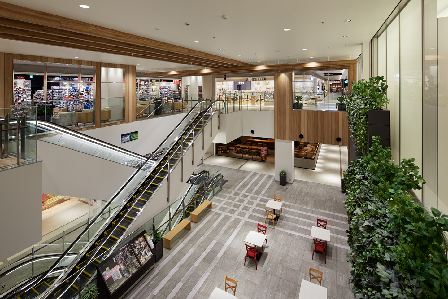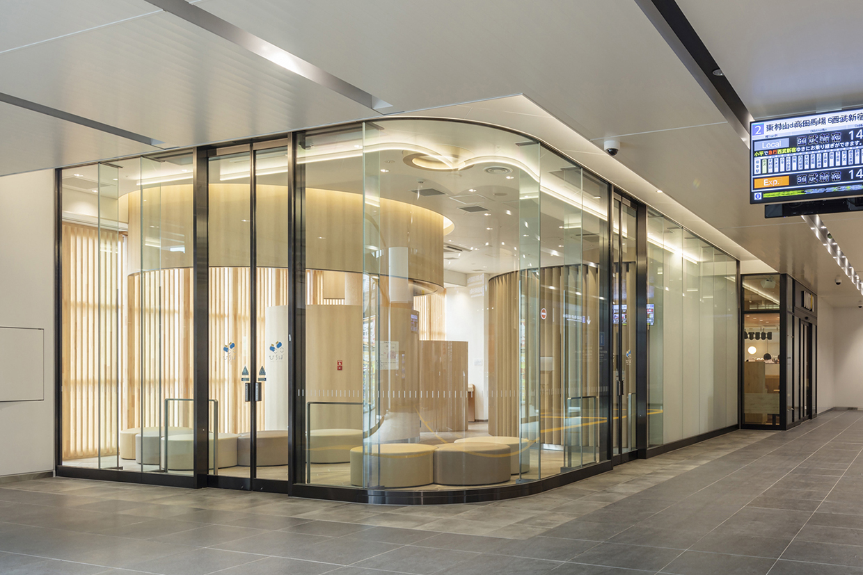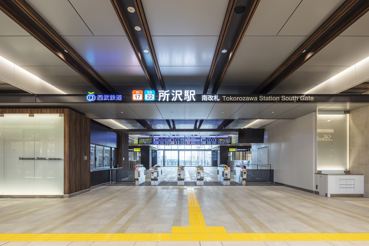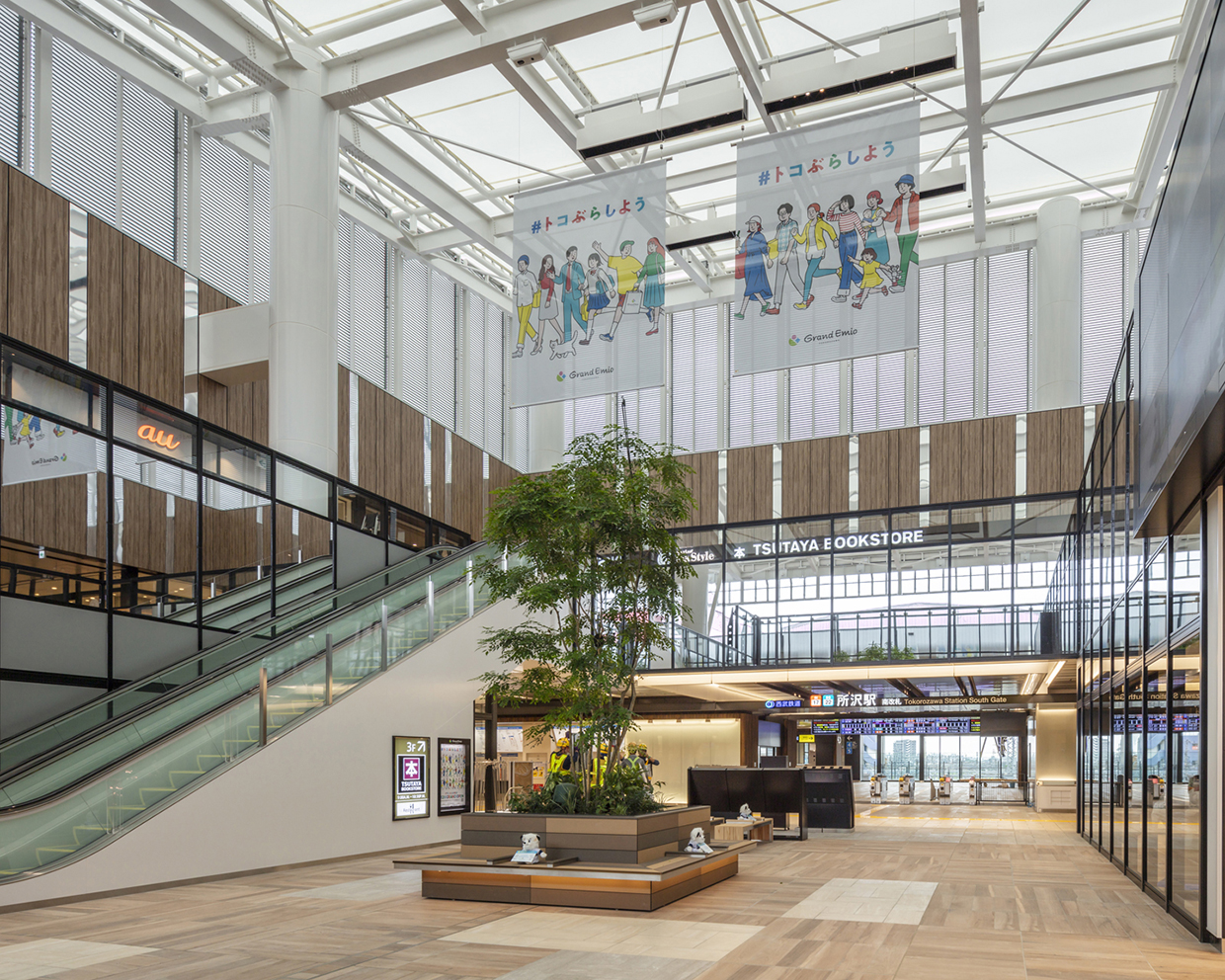 グランエミオ所沢は、改札がある2階が施設の基準階となり既存改札と新改札の間にあるダイナミックな空間を持つ憩いの場「セントラルプラザ」が、駅の中心、商業施設の中心となり人々の回遊性を生じております。「セントラルプラザ」は街の中心ともなるため街と施設を繋ぎます。また、新改札内に待合スペースや列車展望ミニデッキを設け駅機能にプラスアルファの付加価値を提供しています。