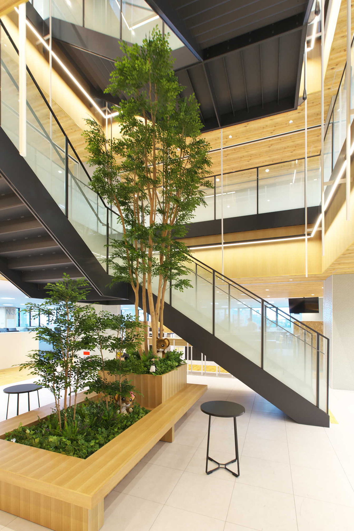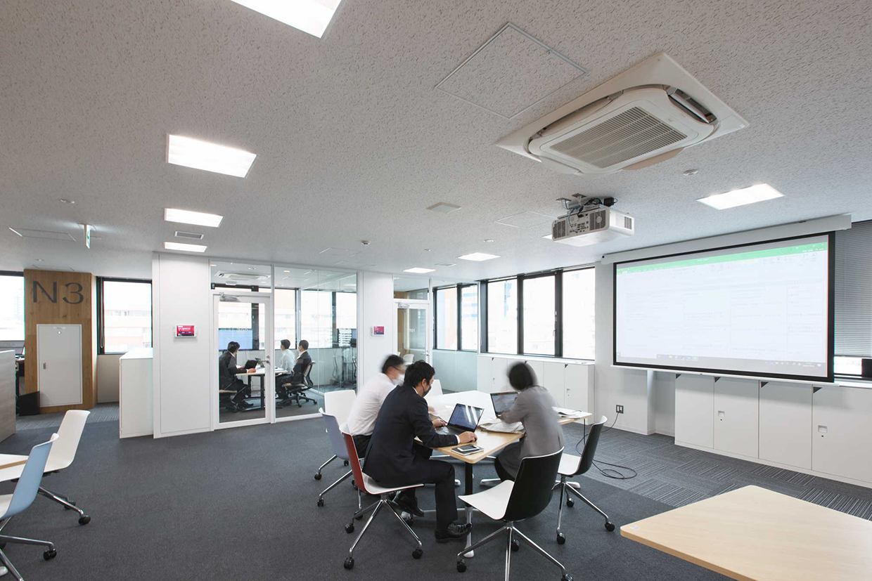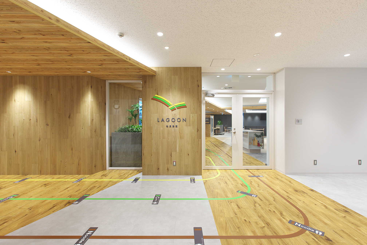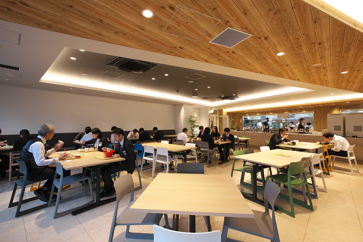 「結び拓くワークプレイス」というコンセプトのもと、社員が働きやすくフレキシブルなワークスタイルを可能にする新支社ビルを目指した。空間的なつながりで明るく開放的なエントランスに加え、6階~8階の中心に設けた執務室内階段が最大の特徴。木目調を多用した内装デザインをベースに、建物内の随所に新潟らしさを施している。