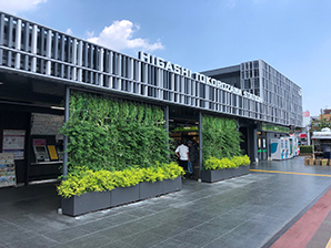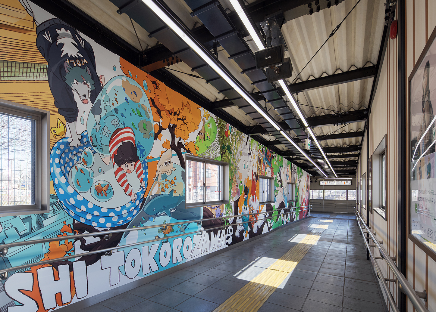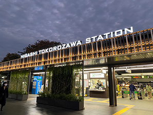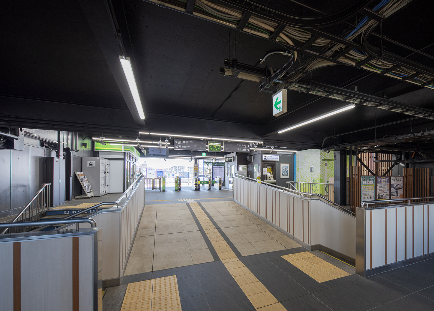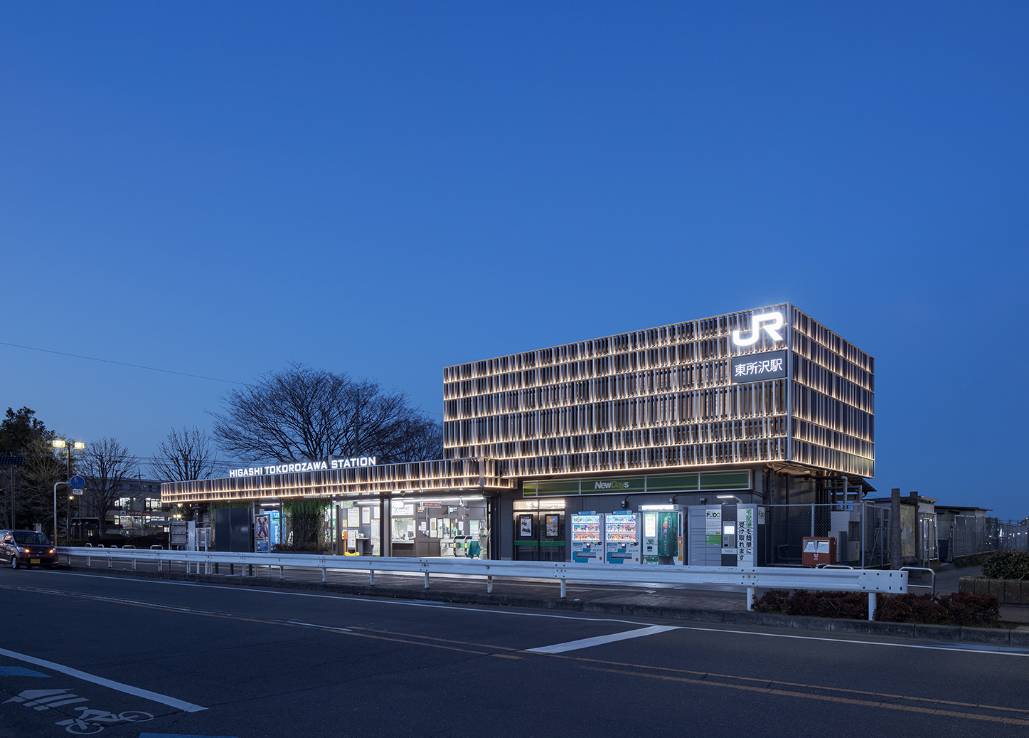 武蔵野台地の森林および地域とゆかりのある本をテーマとして、木と文化が融合した文化発信の拠点駅を目指しリノベーションを行った。緑化を導入することで周辺環境に調和した駅づくりに努めた。基本コンセプトに基づき外装はルーバーにより本棚を表現し内部は木立をイメージしたほか、通路にはポップアートのデザインシートを新設した。