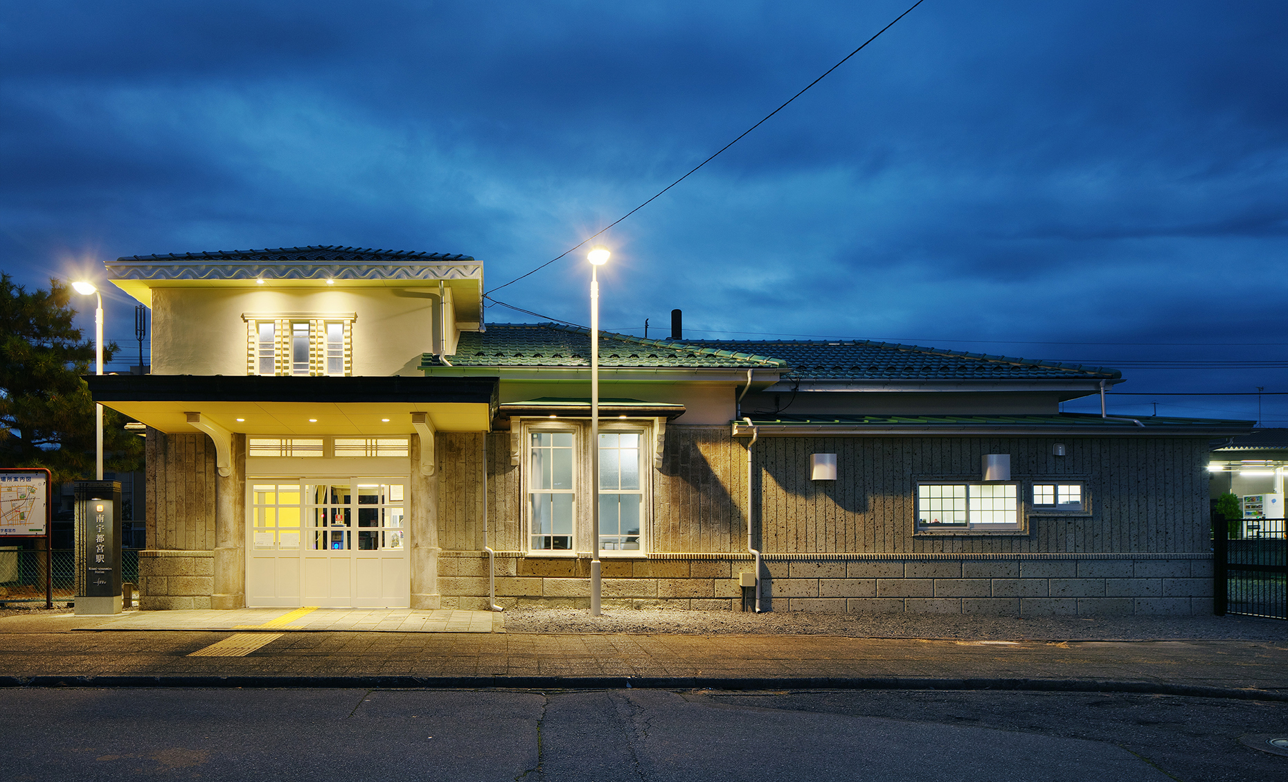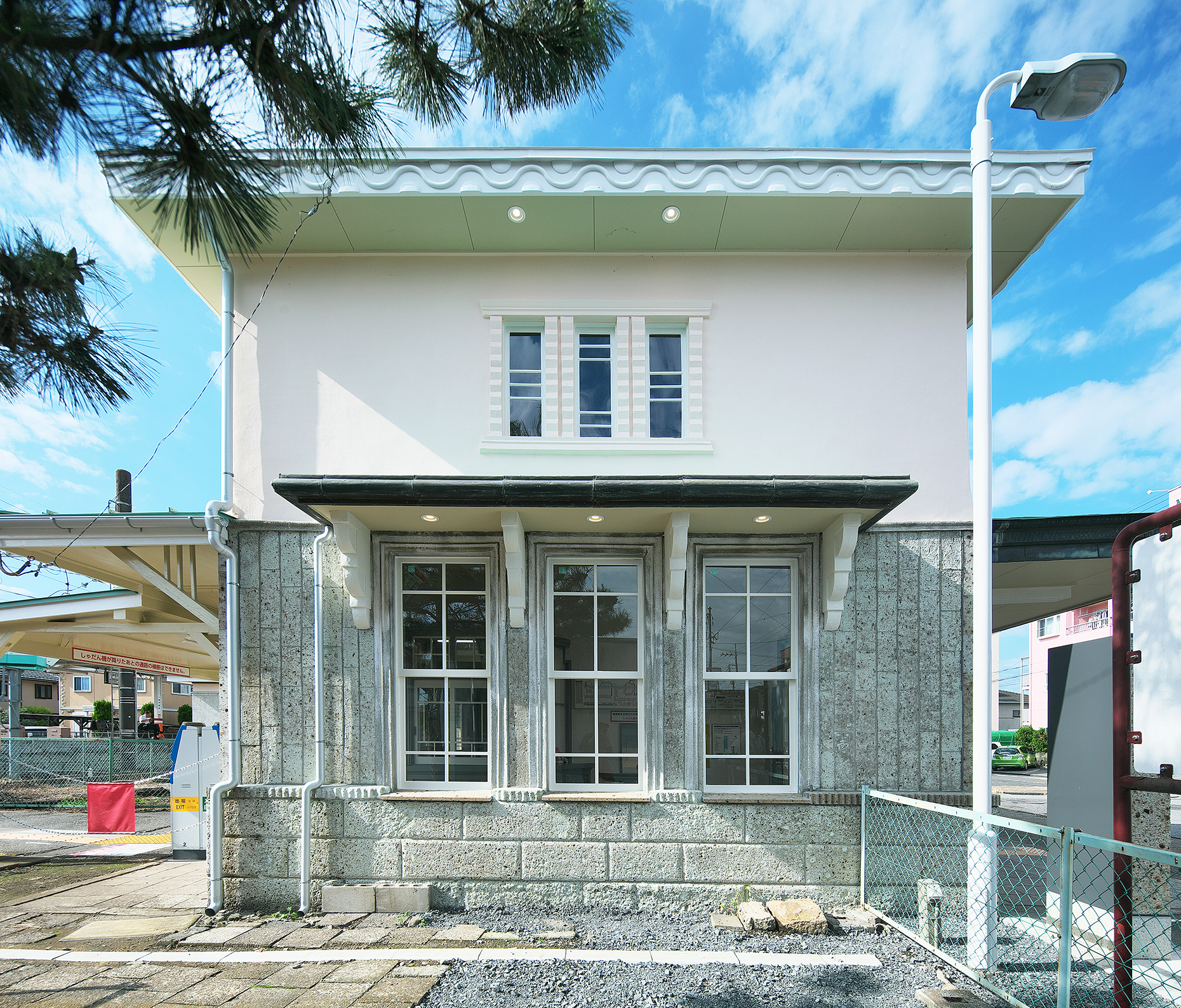昭和7年頃に建築された南宇都宮駅舎には、栃木県下で採掘される大谷石が多用されており、当時のモダンな意匠と共に地域の都市景観を形成している。本計画では、当駅舎の『保存と復原』を基本方針とし、可能な限り既存躯体・仕上げを保存すると共に、劣化が著しい部位は、詳細な調査を実施した上、建築当時の意匠を踏襲し、復原を行った。