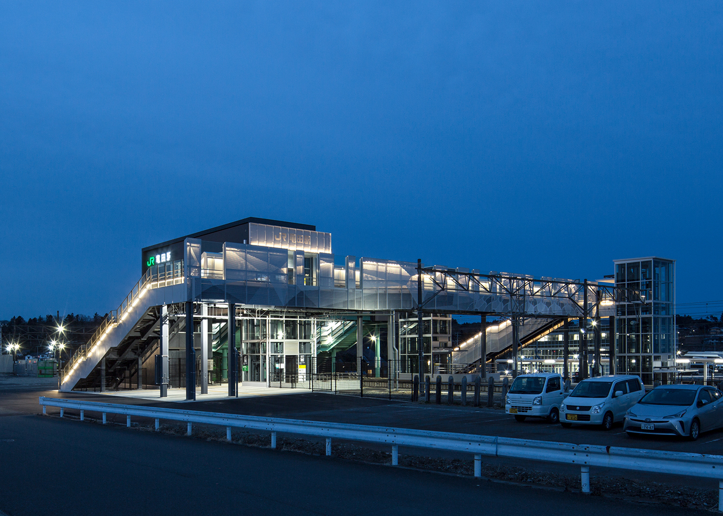 震災復興に向けた地域活性化を図ると共に、駅周辺地域の安全性や利便性の向上を目指し、「新しい風景をつくり、人の活動にとけこむ駅」をコンセプトとして設計を行った。